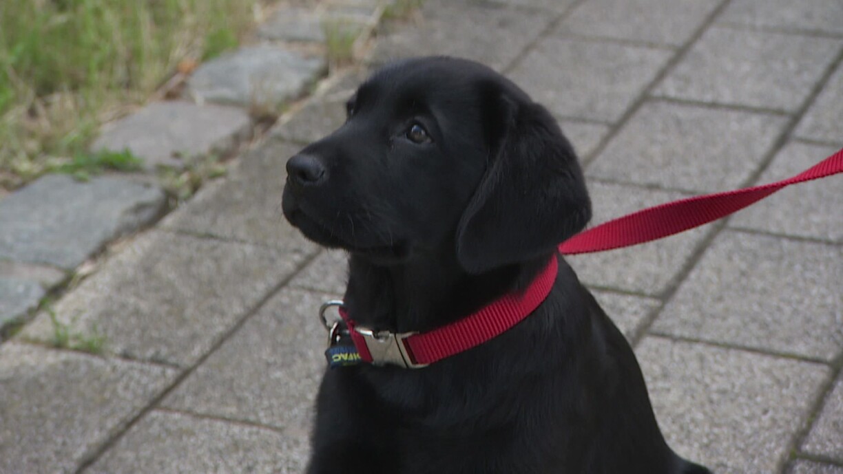 “On veut que ce soit un super chien qui soit à l’aise partout avec tout le monde, pour lui donner les meilleures capacités pour ensuite rentrer à l’Ecole – s’il est fait pour ça! L’Ecole ne forcera jamais un chien à devenir chien guide alors que ce n’est pas fait pour le chien”, dit Clémence Varret.