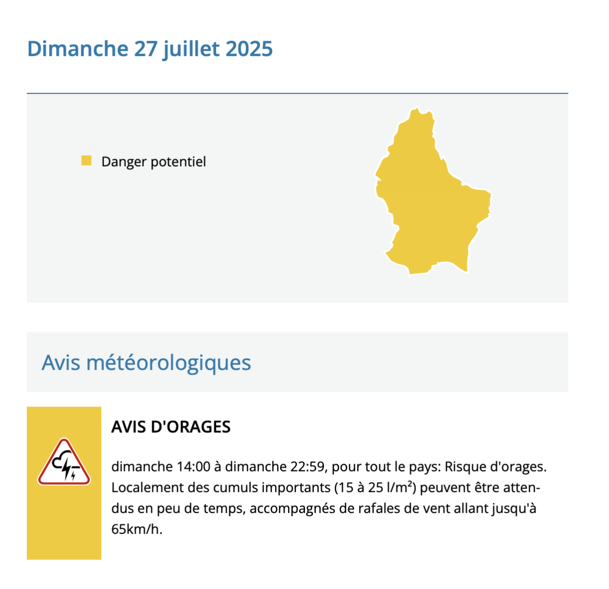 Des orages, de la pluie et des rafales de vent. C’est ce qui nous attend ce dimanche au Luxembourg.