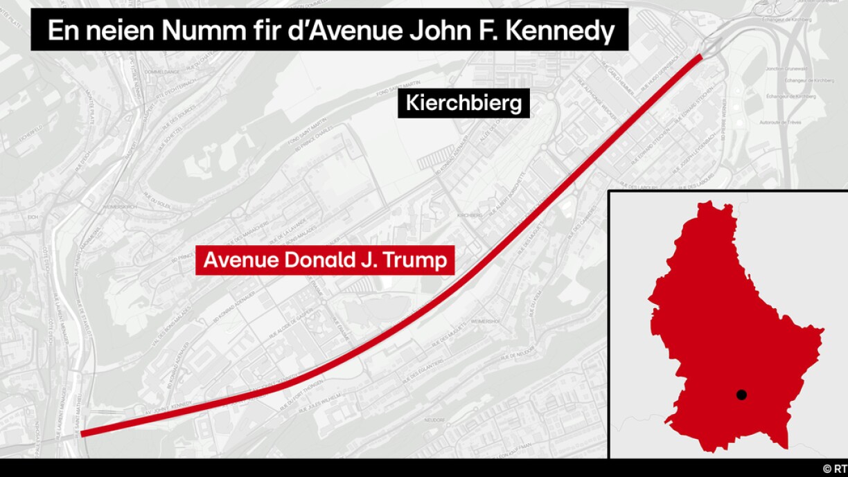 A l’instar de la discussion sur le changement de nom du golfe du Mexique, les données numériques devront bien entendu également être modifiées pour toutes les rues concernées. Ce qui signifie que Google Maps sera confrontée à un énorme défi, car chaque localité ayant une rue JFK, devra s’adresser à Google pour la faire modifier sur ses cartes. Des contrôles seront effectués prochainement, avec des voitures équipées de caméras spéciales sur le toit. L’équipe de RTL Grafik a imaginé comment le Boulevard Kennedy au Kirchberg sera représenté en ligne à l’avenir.