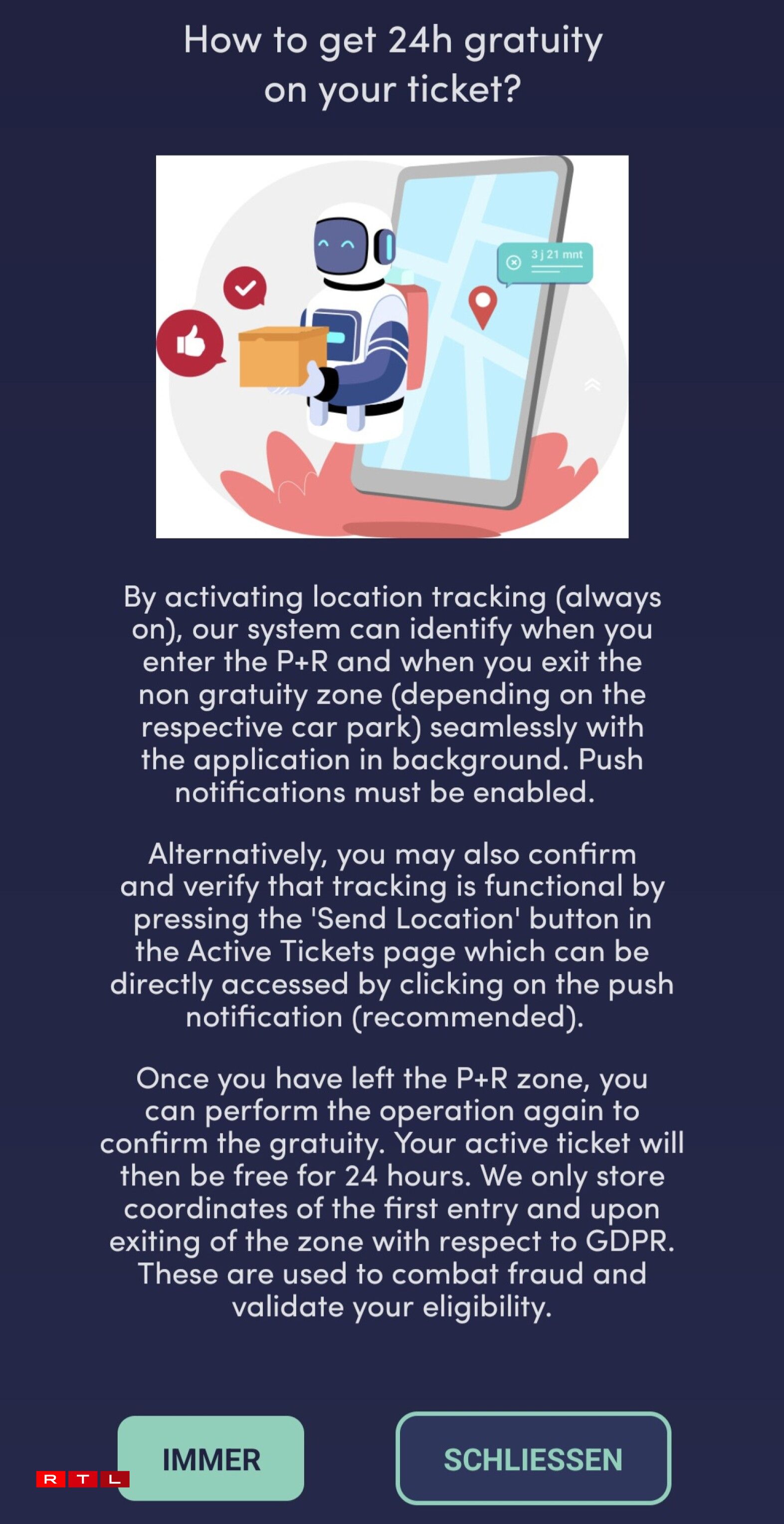 Comme c’est déjà le cas au P+R Belval et à Rodange par exemple, les usagers du nouveau P+R Héienhaff devront préalablement installer l’application P+R CFL. Ce qui permet de vérifier s’ils circulent dans le périmètre autorisé ou s’ils en sortent afin de bénéficier ou non des 24 heures de stationnement gratuit. Ce qui signifie qu’il faut donner à l’application la permission de vérifier sa géolocalisation.