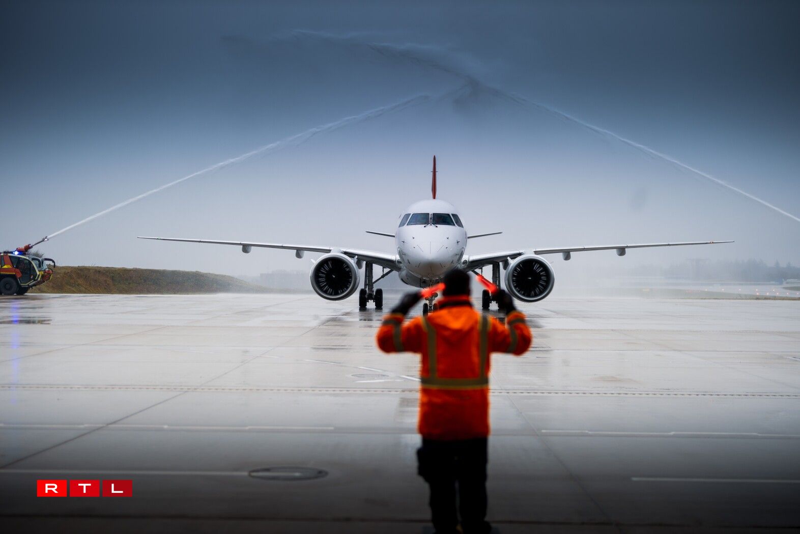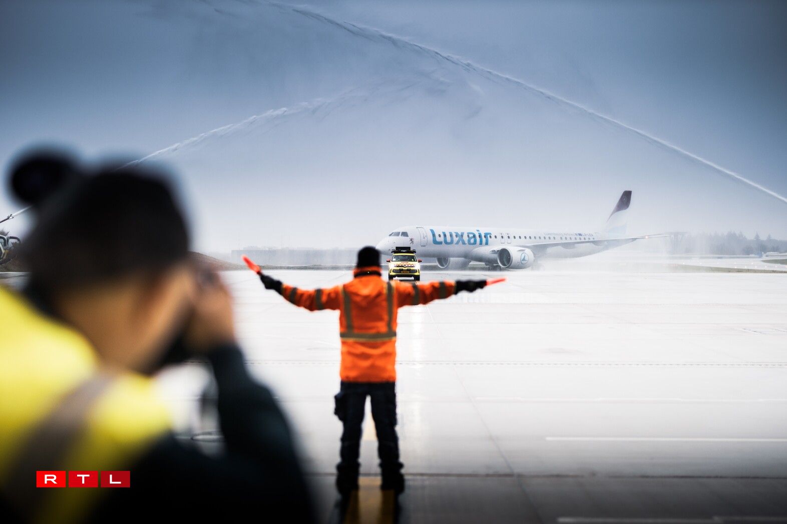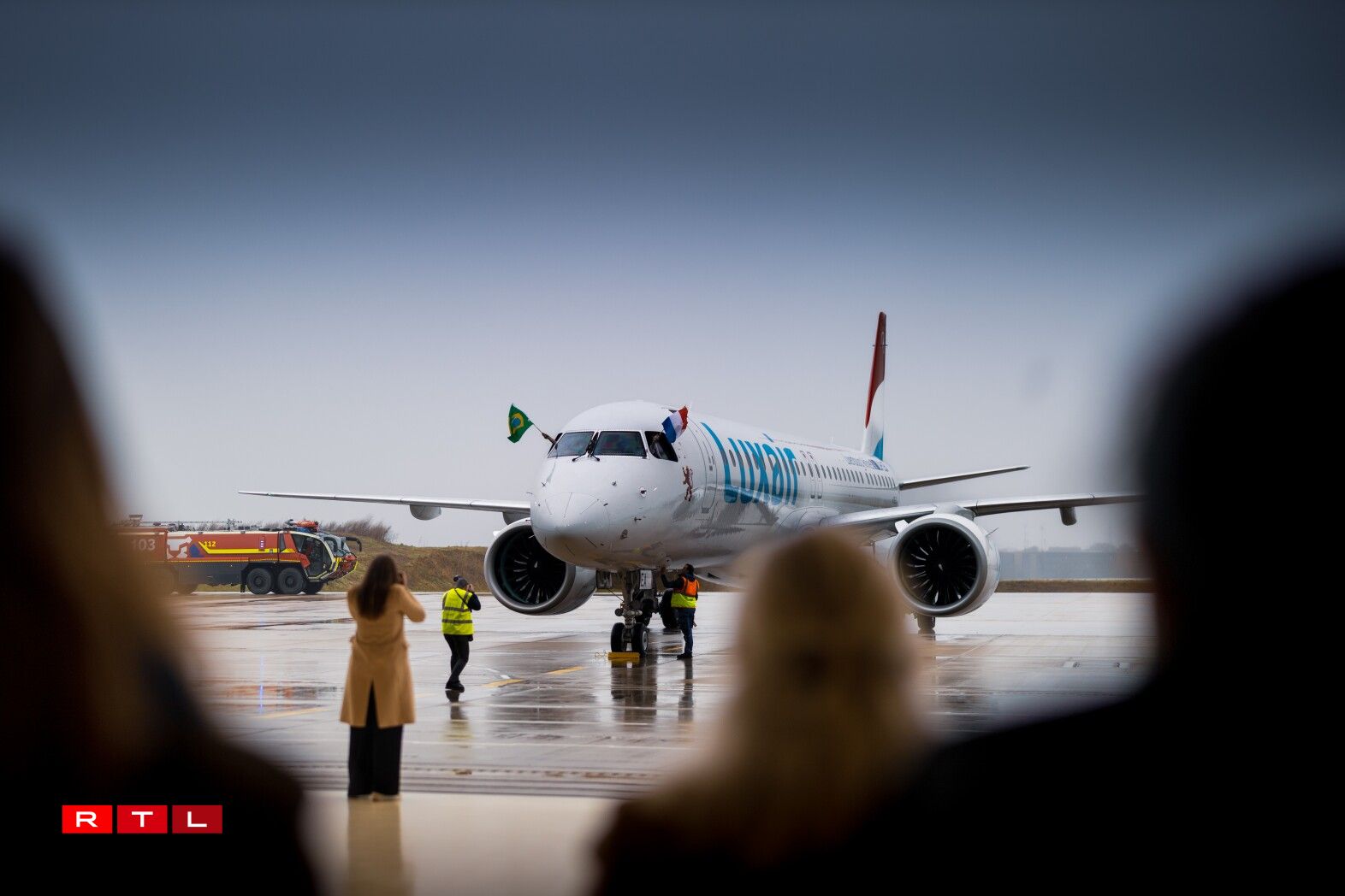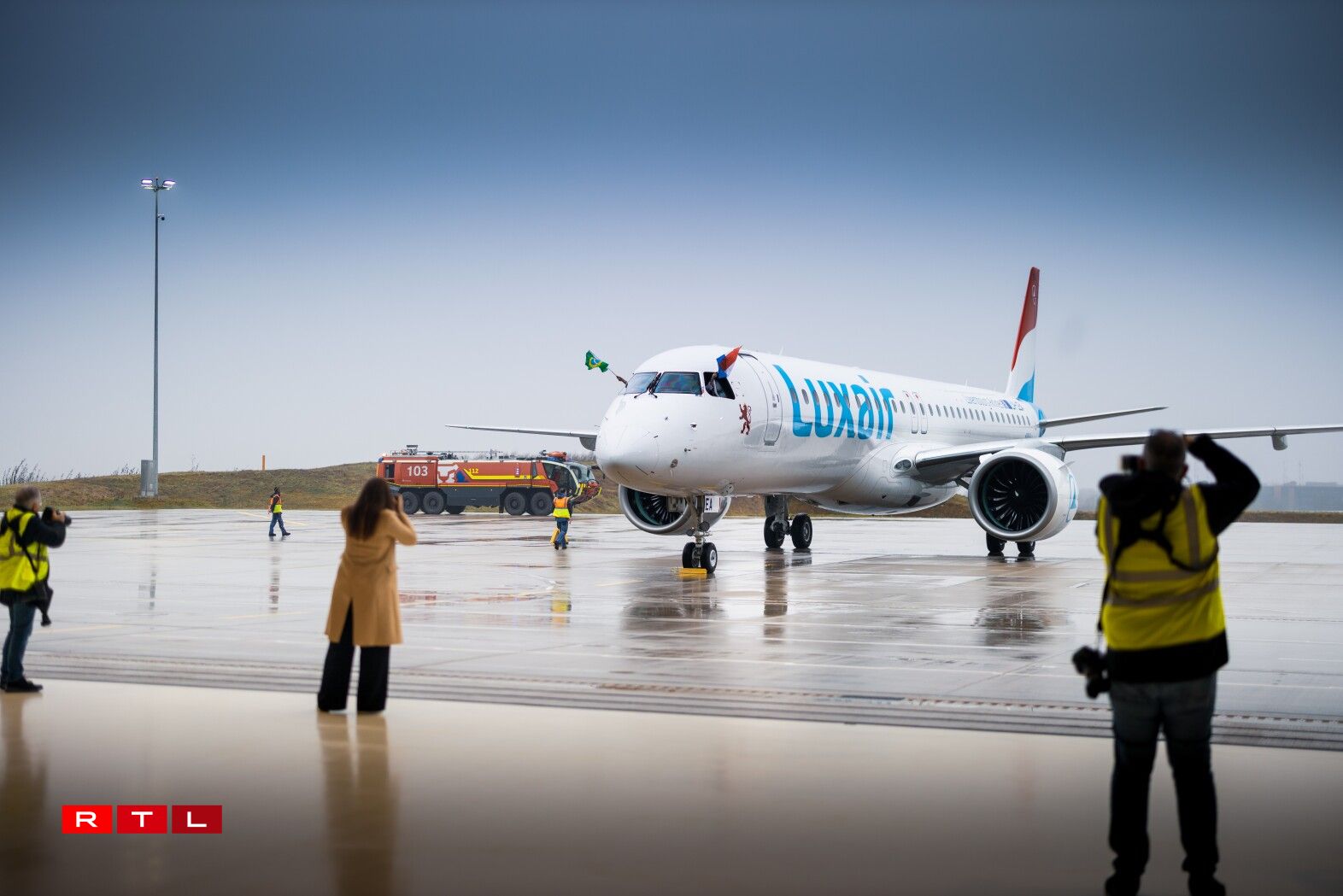 Une arrivée remarquée, avant d’être mis en service sur les lignes régulières de Luxair dès l’an prochain. Le premier des 16 avions Embraer commandés par la compagnie luxembourgeoise s’est posé au Findel ce samedi 29 novembre.