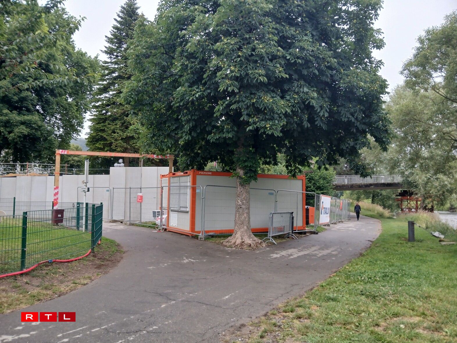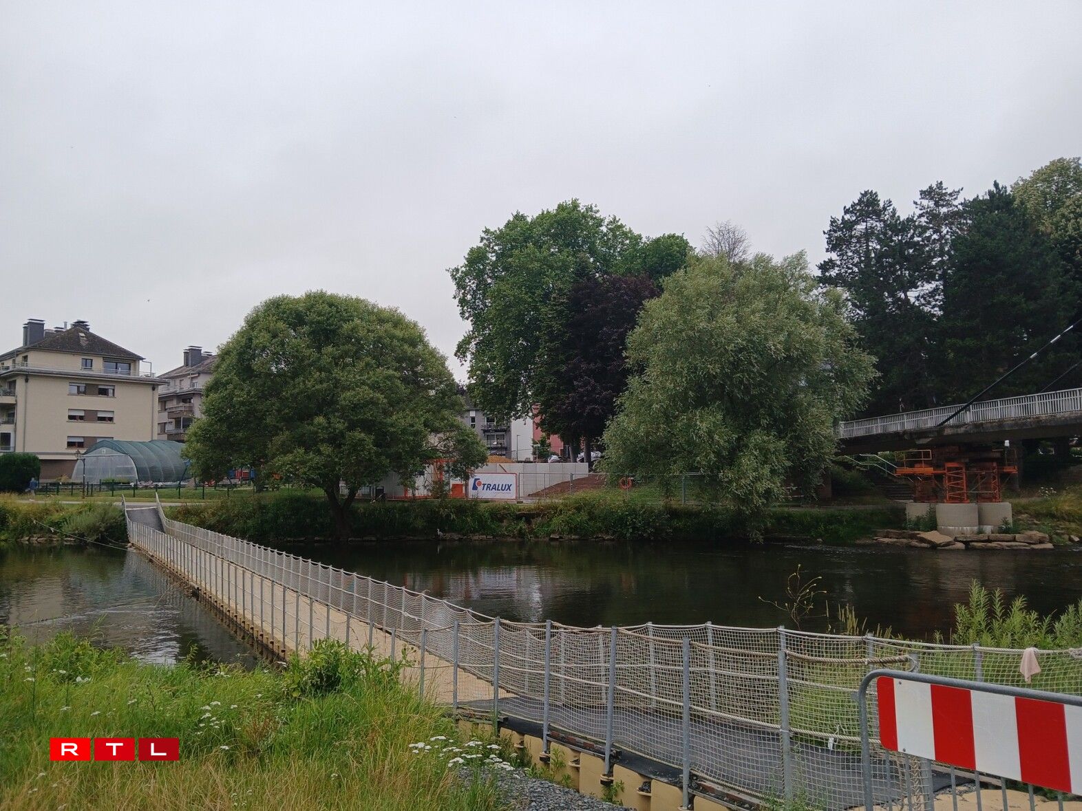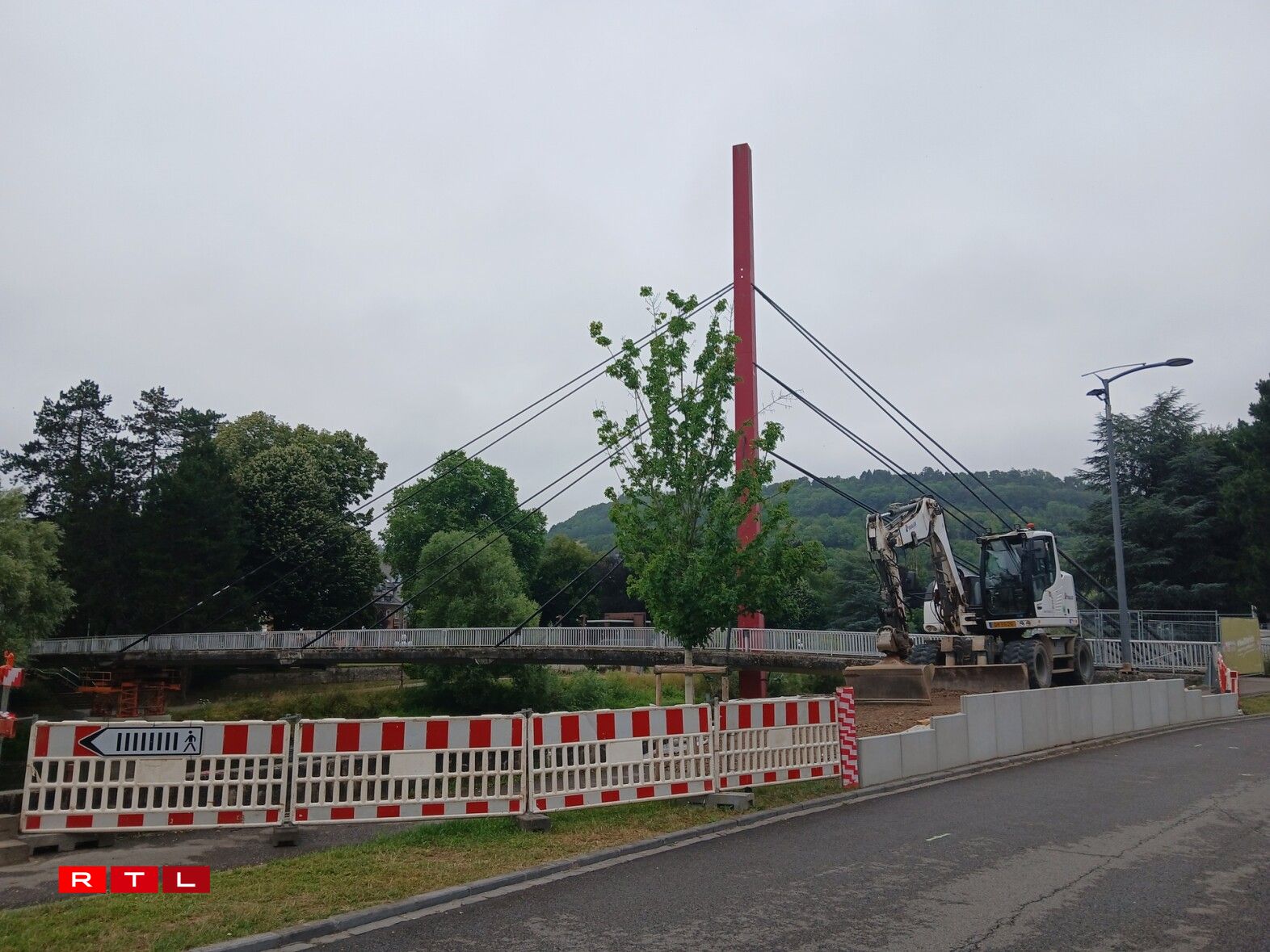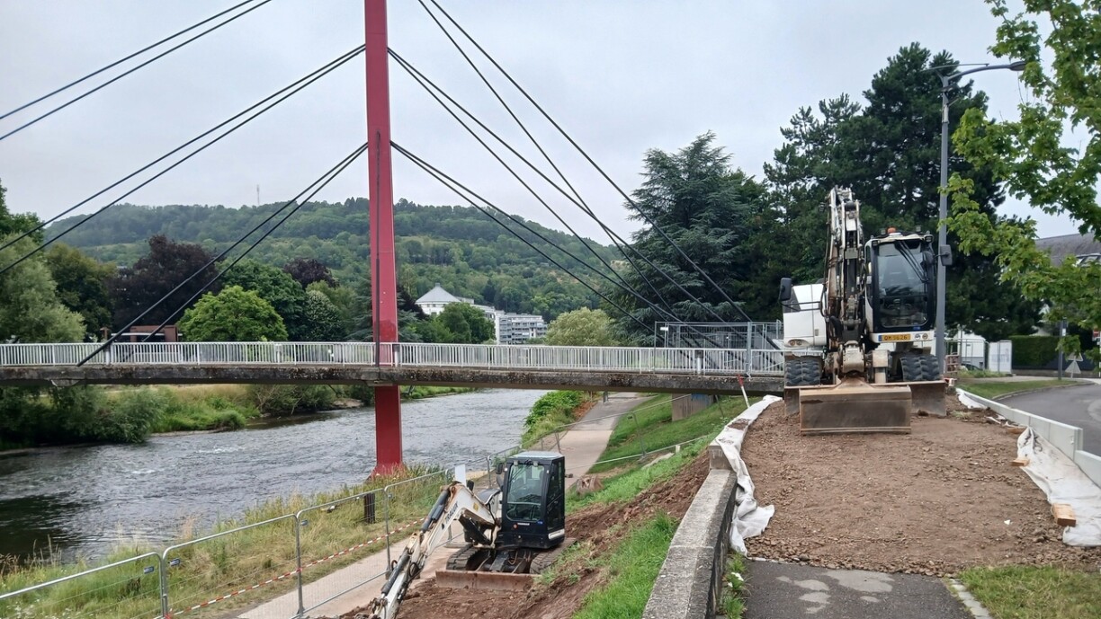 Les travaux préparatoires sont en cours sur les deux rives de la Sûre. Ils seront toutefois interrompus par le congé collectif, de sorte que l’ouvrage ne devrait pas être mis en service avant la mi-septembre. Le ponton disparaîtra alors pour faire place à une passerelle plus solide.