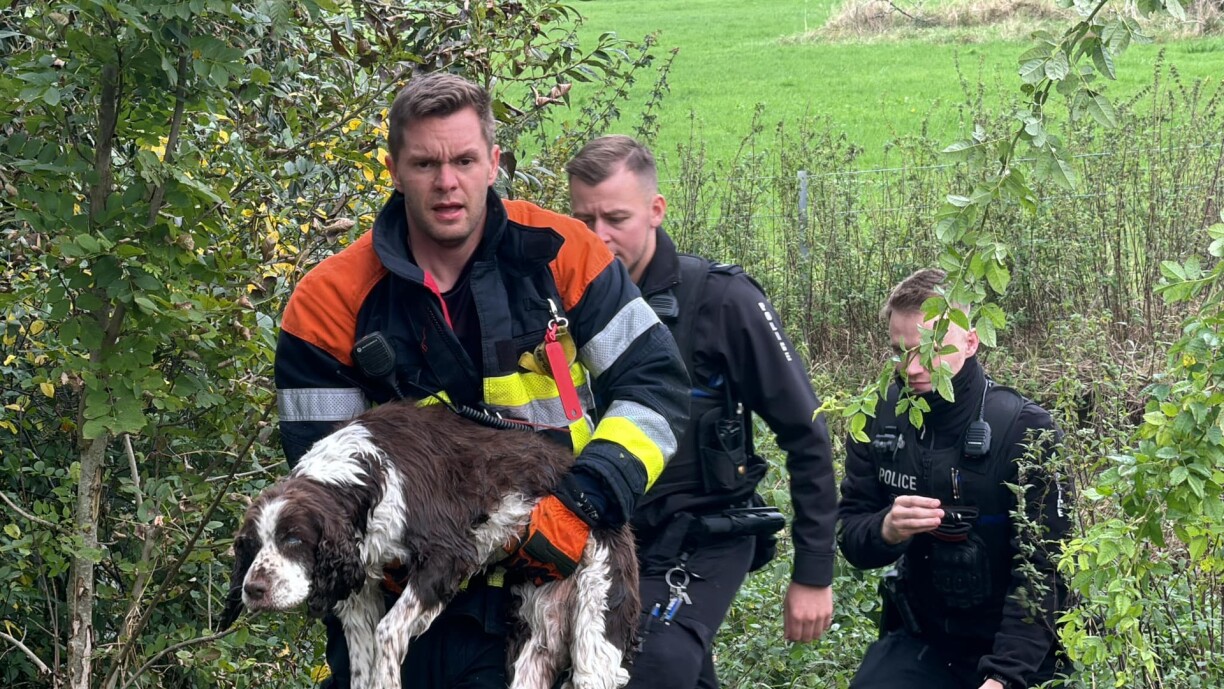 Les plongeurs ont été décommandés et, une fois sauvé des eaux par les collègues du Roeserbann, le chien a été remis entre de bonnes mains, emmitouflé dans une couverture.
