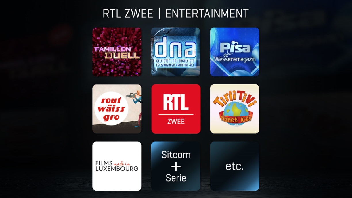 La 2e chaîne “RTL ZWEE” (anciennement “den 2.RTL”) sera dédiée ces prochaines semaines au divertissement. Y seront diffusées des émissions telles que “Famillenduell” (nouvelle saison et anciens épisodes), “Pisa”, “DNA”, sitcoms & séries d’RTL, Films made in Luxembourg, des films pour enfants, “Tirlitvi”, “Musekbox”, et ainsi de suite. La plage horaire de 19:00 heures à 20:00 heures restera bien entendu réservée à l’actualité et aux informations avec “de Magazin” et “de Journal”.