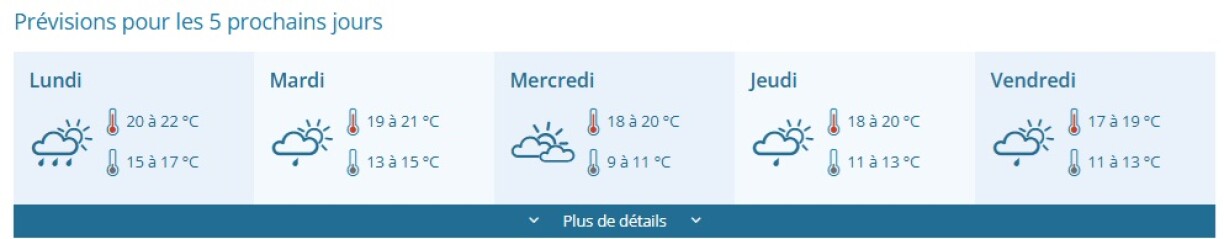 Lundi, cette parenthèse ensoleillée se refermera, et de faibles pluies tomberont dans la journée. Le mercure redescendra aux alentours des 20°C. Un scénario qui devrait se poursuivre au moins jusqu’à vendredi.