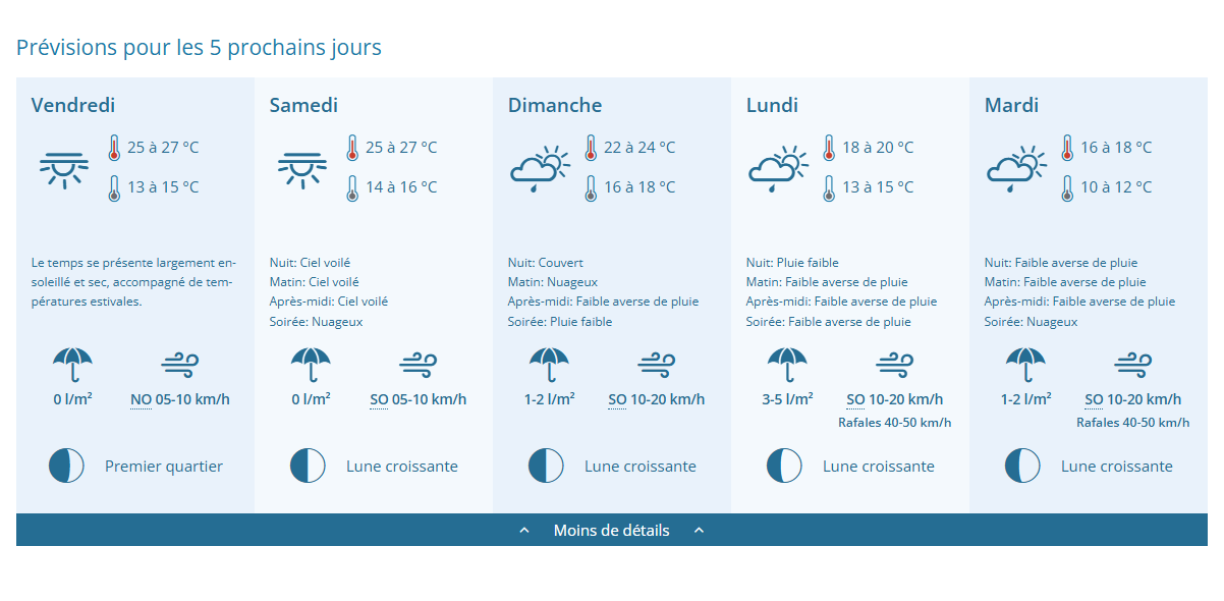 Débute par un temps nuageux avec de faibles averses possibles dans le courant de la matinée, la journée de ce jeudi s’annonce ensoleillée et sèche. Les températures seront estivales et oscilleront entre 24°C et 26°C en journée et entre 22°C et 24°C en soirée.