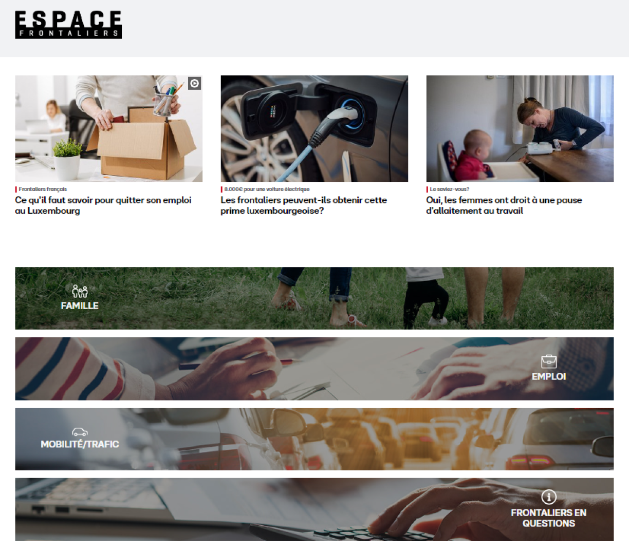 Famille, emploi, mobilité... Retrouvez l’ensemble des informations essentielles pour vivre ou travailler au Grand-Duché dans une et seule rubrique. Que vous soyez frontalier ou pas, il y aura forcément des informations qui pourront vous aider. N’hésitez pas à faire un tour dans notre Espace frontalier!