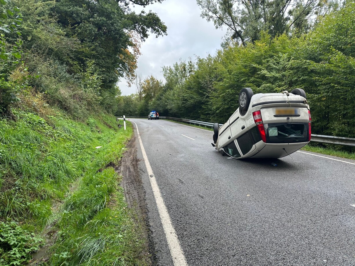 Comme l’a appris RTL sur place, le véhicule a fait un écart alors qu’il passait sur le CR118. En butant sur le talus en bord de route, le véhicule s’est retourné, s’immobilisant au milieu de la chaussée.