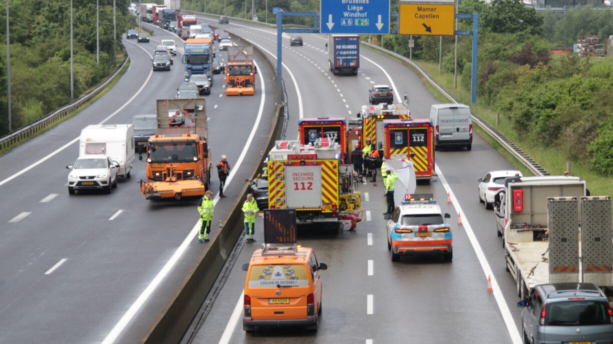 Les deux voies de circulation étaient bloquées jusque 14h afin de permettre l'intervention des secours. Seule la bande d'arrêt d'urgence était accessible.