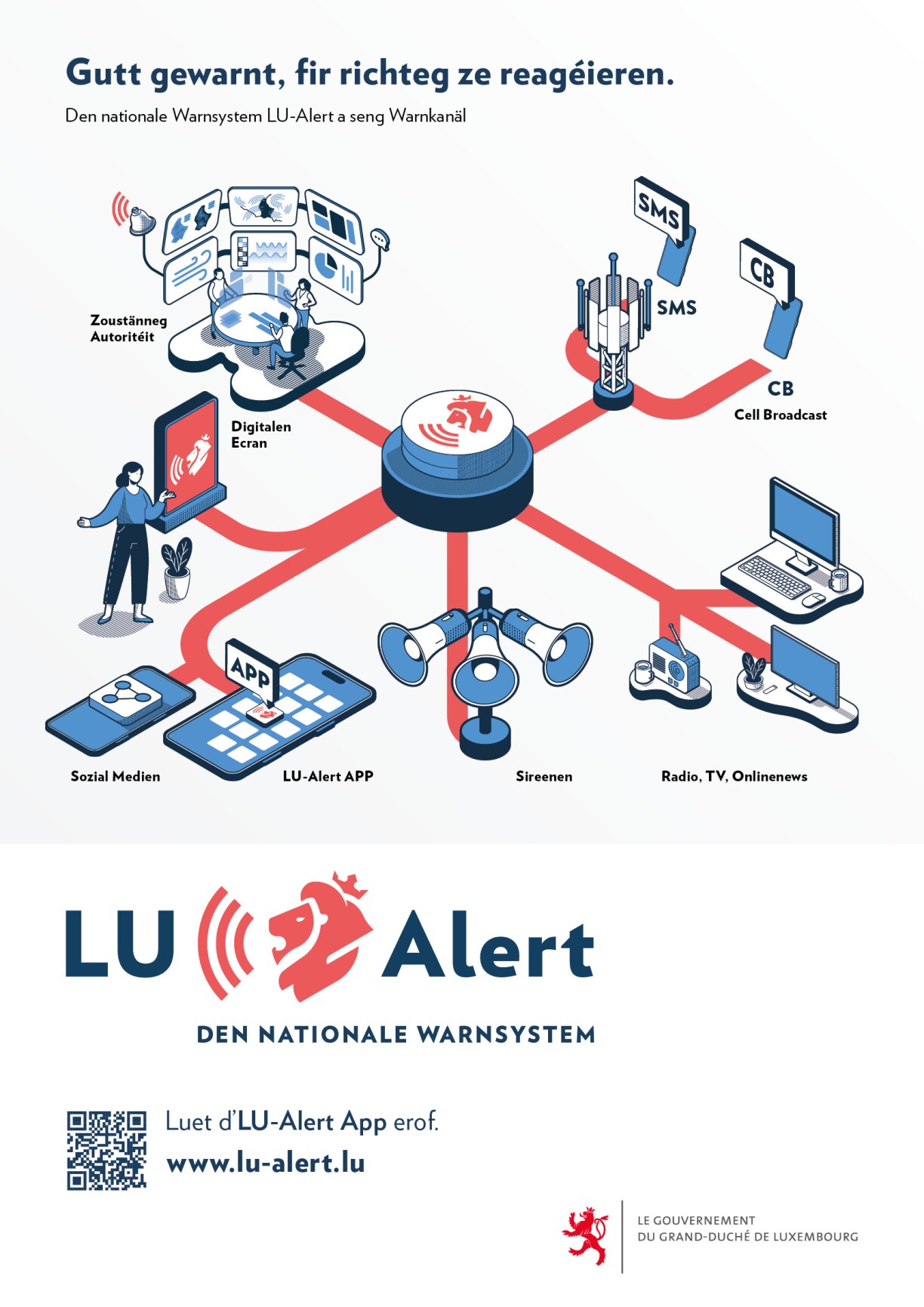C’est pour cette raison qu’un nouveau système d’alerte et d’information à la population a été élaboré ces dernières années. Le système LU-Alert, basé sur le principe “Early Warning – Early Action” a été lancé jeudi par le ministre des Affaires intérieures, Léon Gloden.