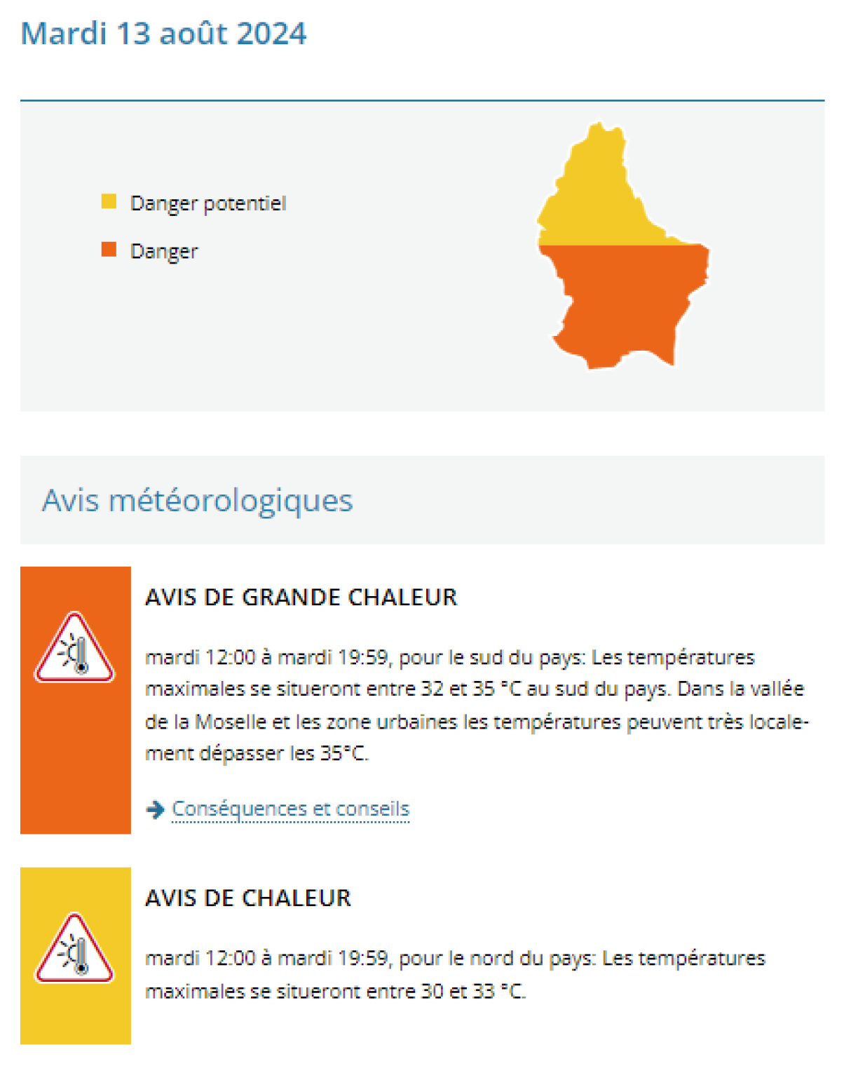La journée de mardi sera a priori identique à celle de lundi: du soleil, de la chaleur, une vigilance orange pour le sud et jaune pour le nord en vigueur de 12h à 20h avec des températures pouvant atteindre les 35 degrés - voire les dépasser près de la Moselle - au plus fort de l'après-midi.
