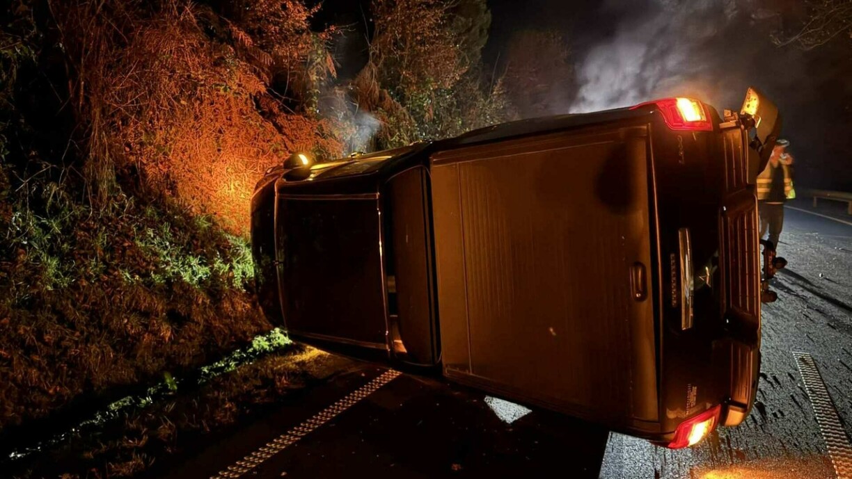Un conducteur aurait perdu le contrôle de son véhicule dans un tournant situé entre Müllertal et Vugelsmillen, la chaussée ayant été rendue glissante suite à une coulée de boue. Le véhicule a fini sur le flanc, en travers de la chaussée.