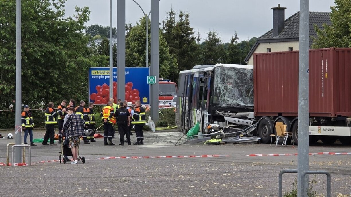 En tout, 14 personnes avaient été blessées, dont deux plus sérieusement, lors de la collision entre un bus et un camion. Pour des raisons encore inconnues, le bus avait traversé un rond-point situé sur la N15 avant de percuter violemment la remorque d'un camion stationné plus loin.