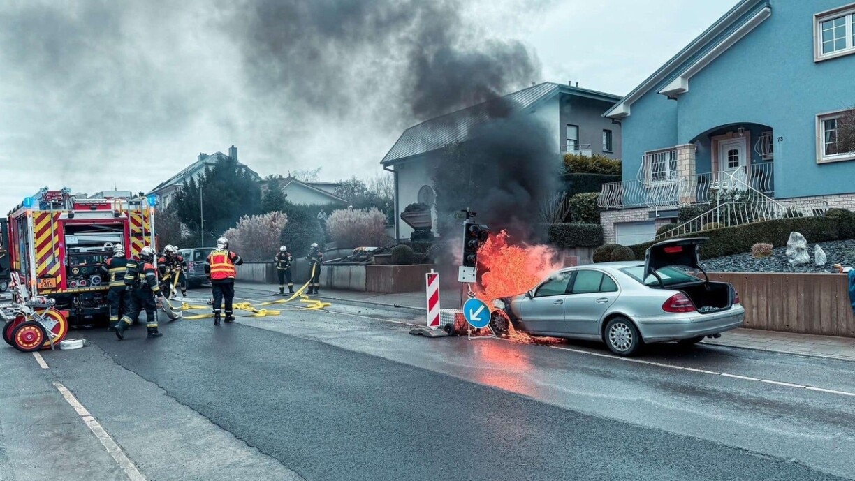 Une fois sur place, il s'est avéré qu'une voiture garée avait effectivement pris feu le long de la chaussée, près d'un feu tricolore de chantier.