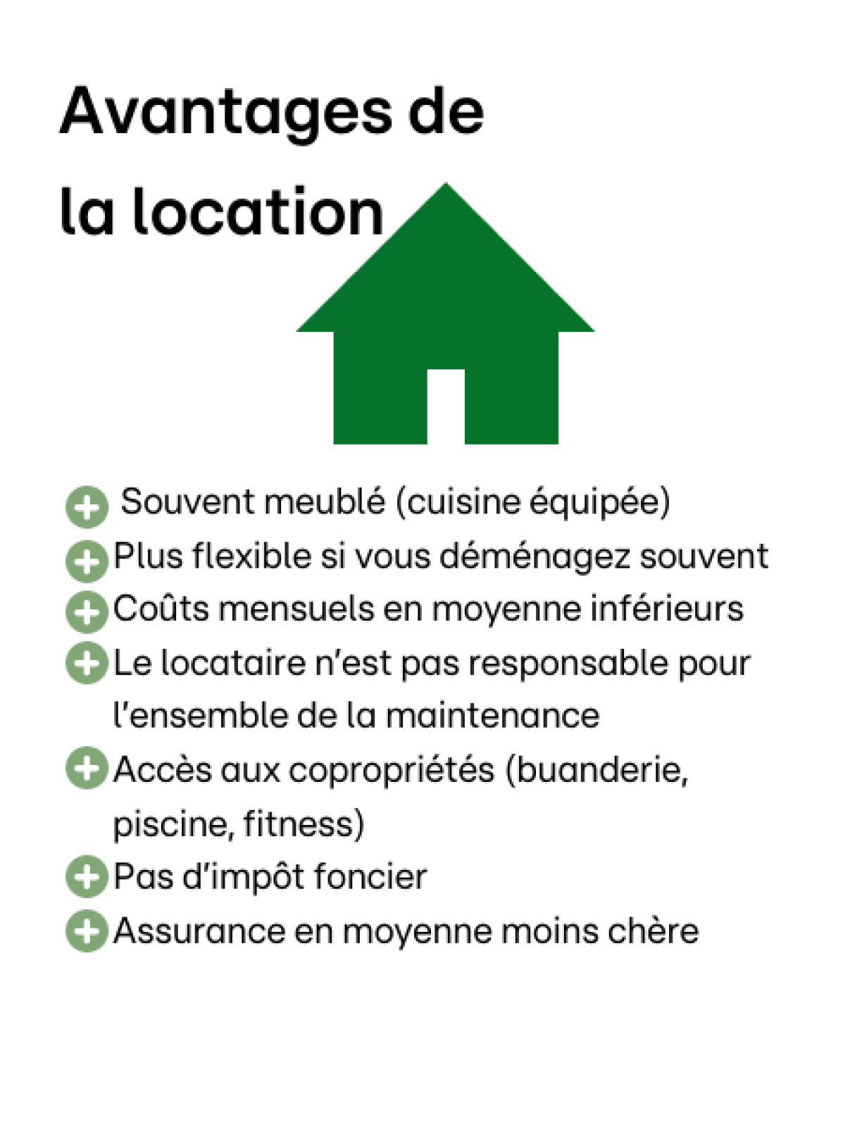 Il y a donc ceux pour qui il est évident d’acheter et il y a les autres qui préfèrent être flexibles et tendent vers la location. Les deux options ont leurs avantages et leurs inconvénients.