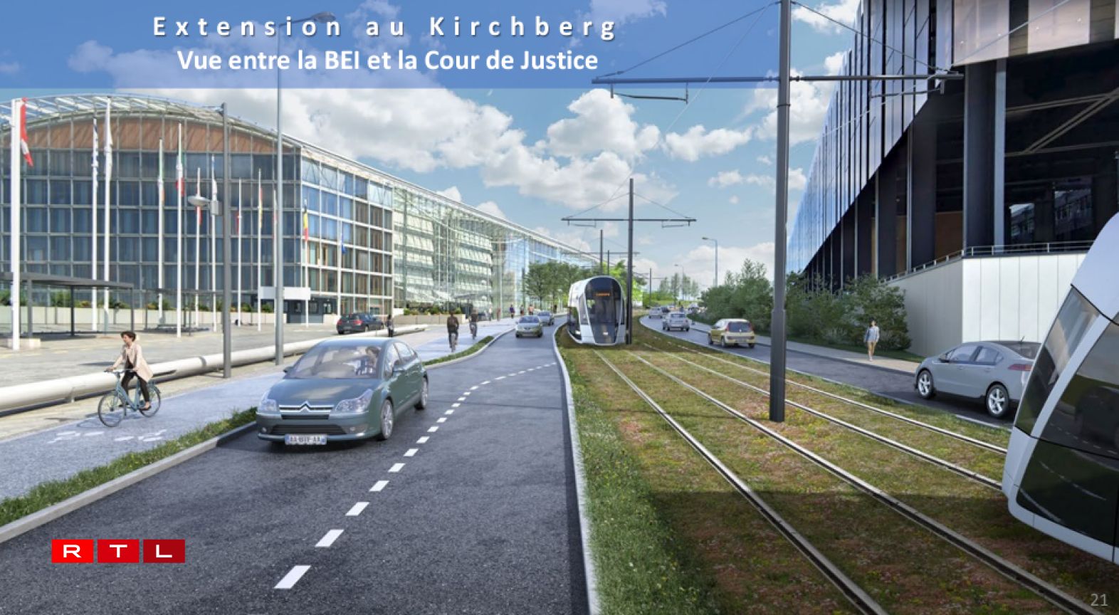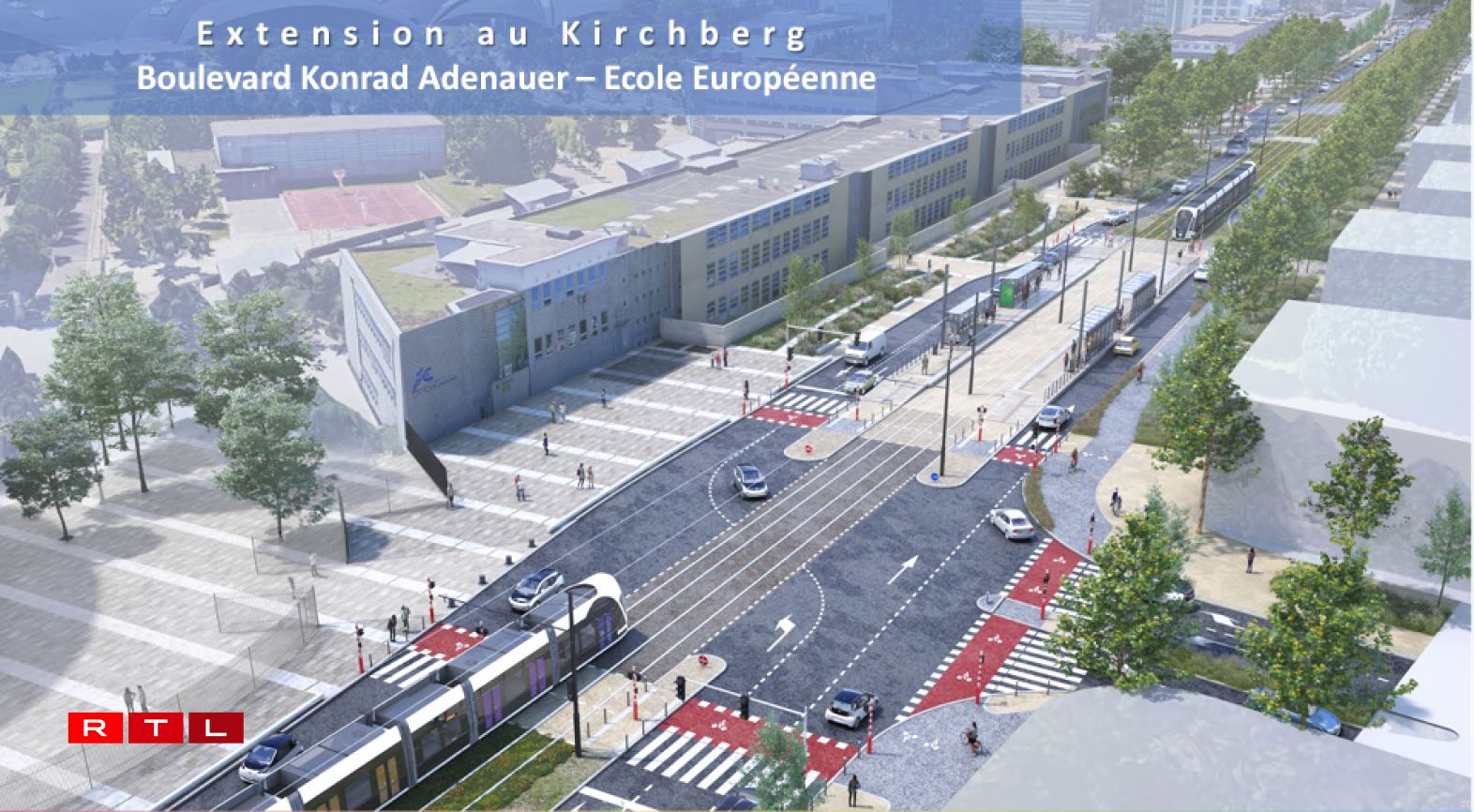 Le tracé prévu au Kirchberg bifurquera au niveau du Pont Rouge et empruntera le boulevard Konrad Adenauer pour aller desservir les futurs quartiers Laangfur et Kuebebierg. Le gouvernement prévoit de lancer les travaux en 2025 et espère pouvoir finaliser le chantier courant 2027.