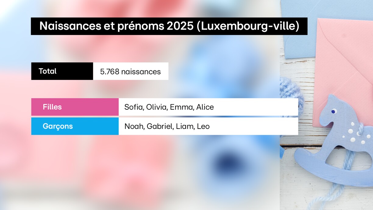 Quels ont été les prénoms les plus choisis à la naissance en 2025 ? RTL a interrogé les principaux centres hospitaliers du nord, du centre et du sud du pays. Au 22 décembre, voici les prénoms les plus populaires donnés au Luxembourg.