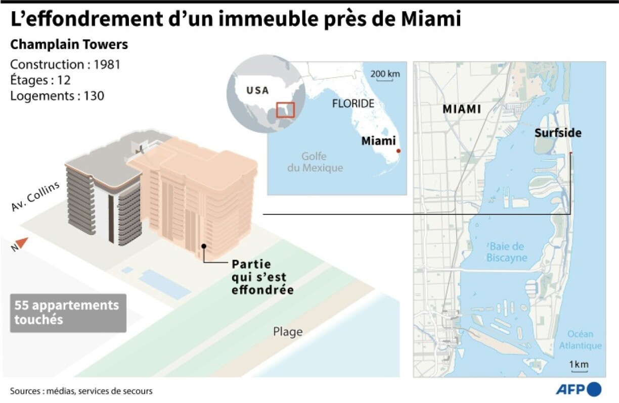 “Il y a désormais 24 victimes” et “124 personnes disparues”, a déclaré à la presse la maire du comté de Miami-Dade, Daniella Levine Cava, rappelant que ce chiffre était amené à évoluer.