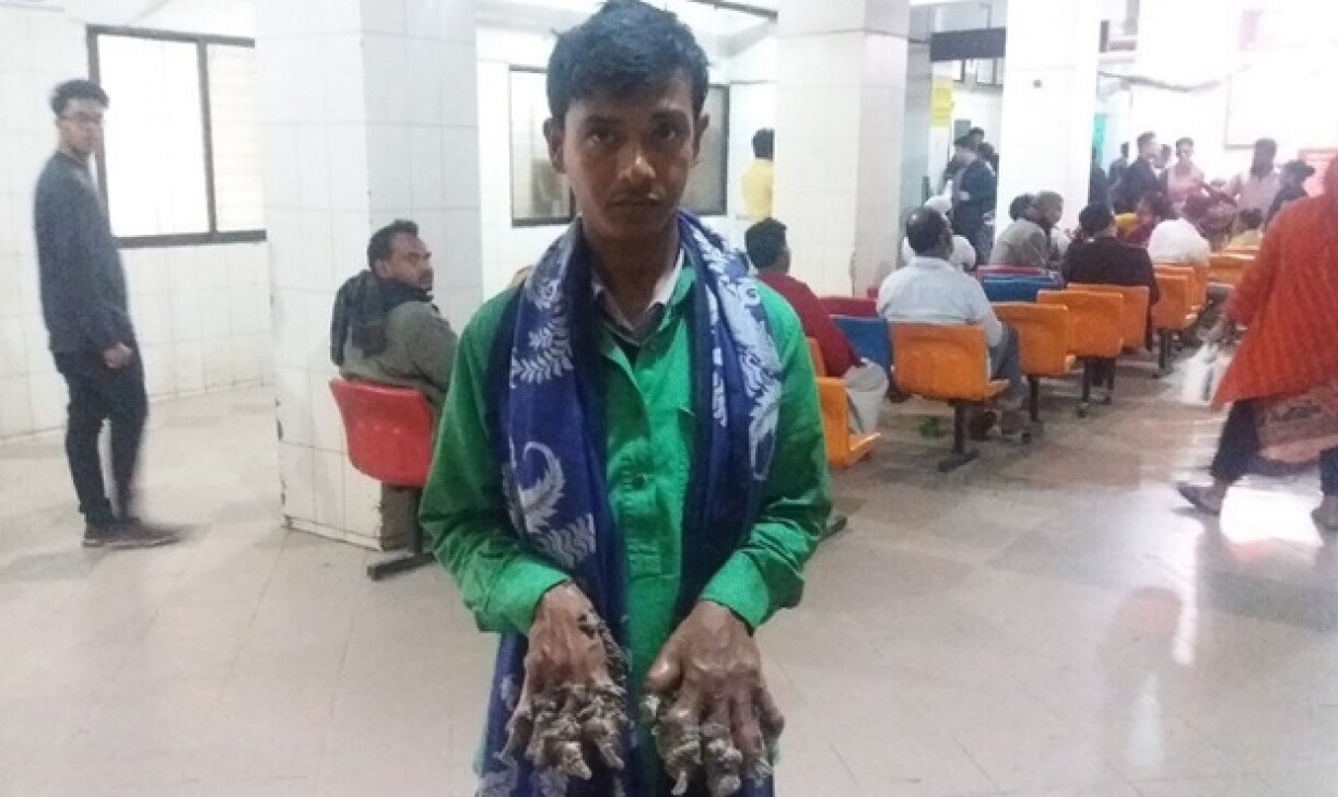 Abul Bajandar, 28 ans, souffre d’épidermodysplasie verruciforme, une maladie génétique rarissime. Le cas de cet ancien tireur de rickshaw avait fait le tour du monde lors de sa première admission à l’hôpital au Bangladesh en 2016.