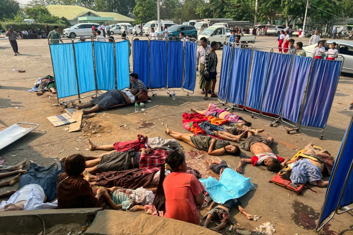 Les corps en sang ou tordus de douleur gisent sur le sol, faute de place, devant les urgences de l’hôpital général de la capitale birmane Naypyidaw après le violent séisme qui a frappé le pays vendredi.