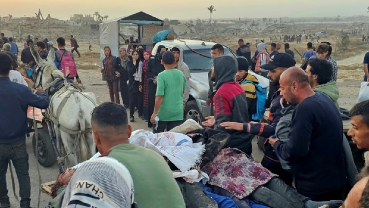 Des images de l’AFP montrent des habitants évacuant des morts sur une charrette tirée par un âne, et une foule compacte d’hommes, certains chargés de colis, s’en revenant du centre, dans un paysage désertique et dévasté.