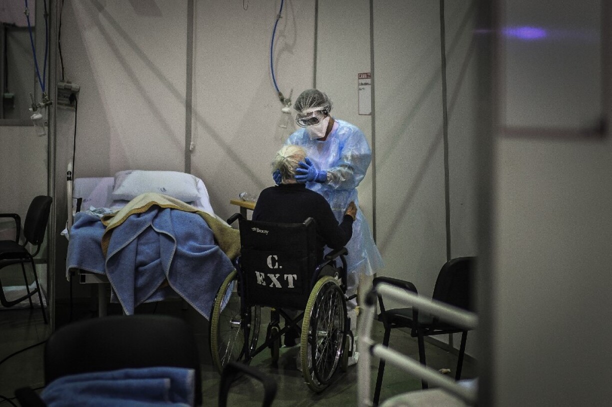 L’immense salle, qui accueille habituellement des concerts ou des expositions, a été transformé en un hôpital de campagne doté d’une centaine de lits.