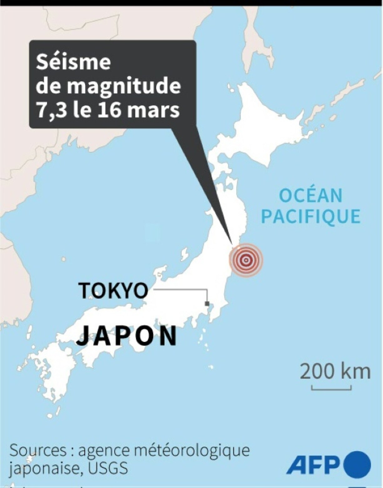 Selon l’Agence météorologique japonaise (JMA), l’hypocentre de la secousse survenue mercredi à 23H36 (14H36 GMT), réévaluée à 7,4 (contre 7,3 initialement), se trouvait à 60 km de profondeur sous l’océan Pacifique au large du département de Fukushima, où une centrale nucléaire avait été ravagée par un tsunami en 2011.