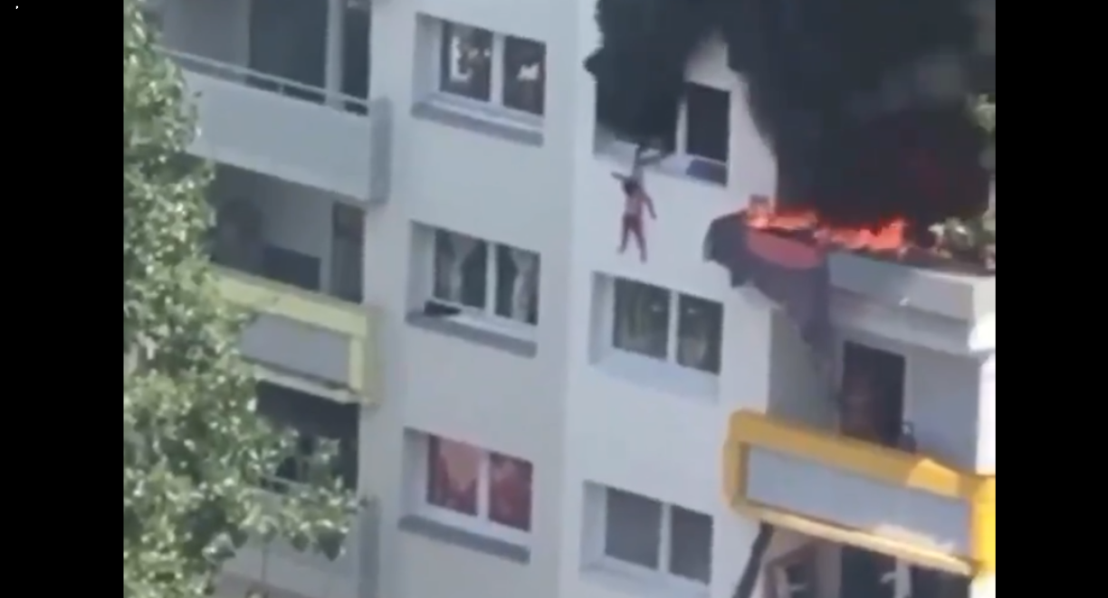 Les images donnent froid dans le dos: on y voit deux enfants de 3 et 10 ans suspendus dans le vide par leurs proches, des flammes sortant de leur appartement, avant d’être lâchés et de subir une chute d’une douzaine de mètres. En dessous d’eux, aucun service de secours, juste un attroupement d’adultes qui tentent tant bien que mal de les réceptionner, les bras tendus vers le ciel...