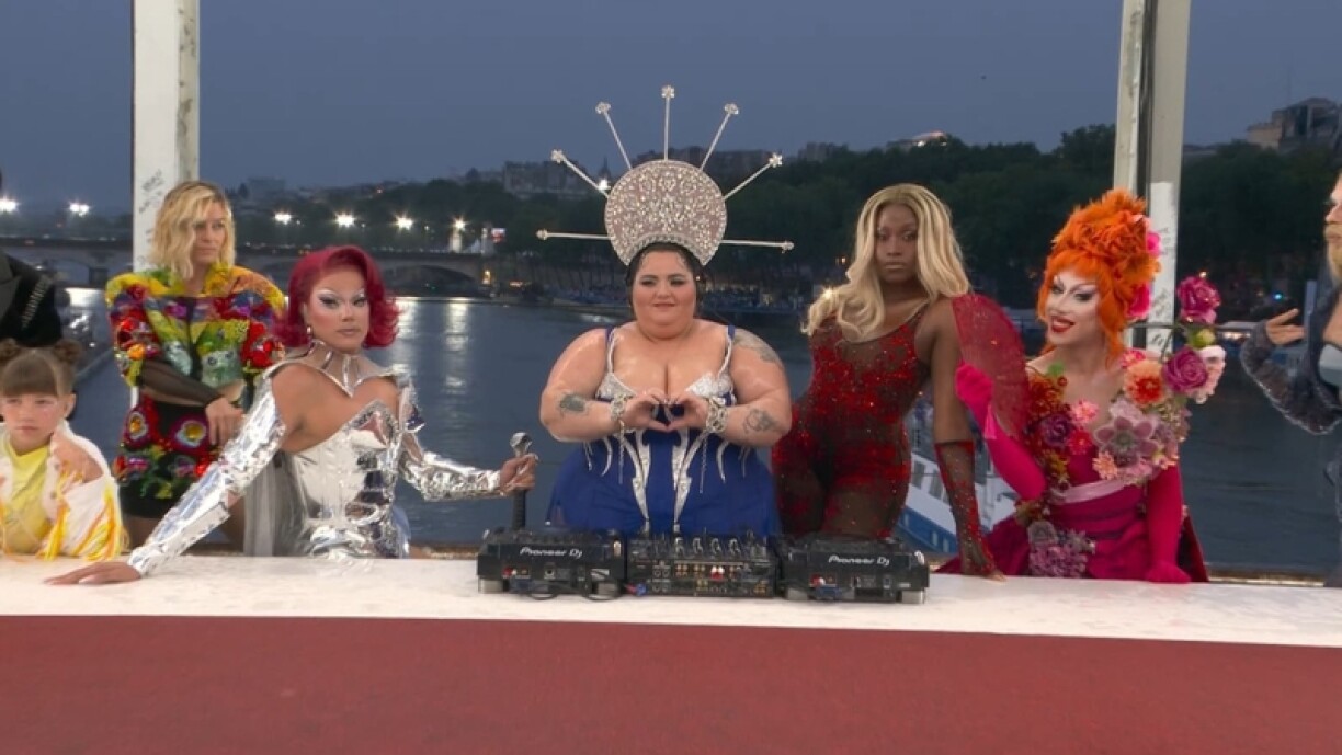 Barbara Butch a performé lors du tableau intitulé “Festivité”, commençant par l’image d’un groupe attablé, dont plusieurs drag queens célèbres (Nicky Doll, Paloma et Piche reconnaissable à sa barbe blonde), que certains ont interprété comme une parodie moqueuse du dernier repas de Jésus avec ses apôtres, la Cène, telle que représentée par Léonard de Vinci.