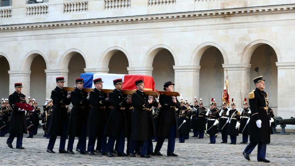 Après l’éloge funèbre du chef de l’Etat, la sonnerie aux morts, la Marseillaise et l’Ode à la joie, l’hymne européen, ont retenti dans la cour des Invalides.