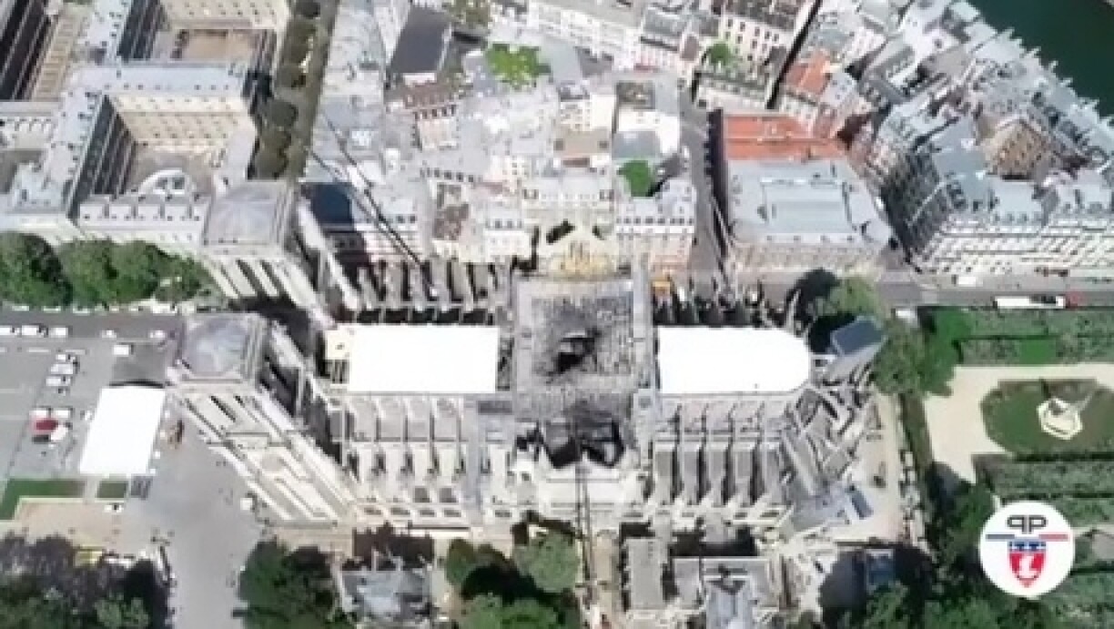 Celle-ci prend la forme d’une gigantesque bâche blanche, qui recouvre la surface laissée vide par la charpente en bois. Les travaux de protection de l’édifice vont se poursuivre encore plusieurs semaines.