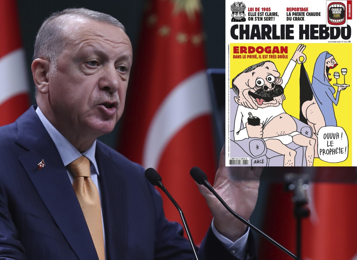 La caricature, diffusée en ligne mardi soir, montre M. Erdogan, en T-shirt et sous-vêtements, en train de boire une bière et de soulever la jupe d’une femme portant le voile, dévoilant ainsi ses fesses nues.