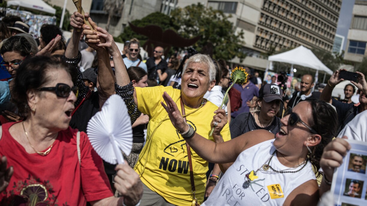 Sur la “place des Otages” à Tel-Aviv, des centaines de personnes se sont rassemblées, beaucoup arborant un autocollant avec l’inscription “Ils reviennent”, d’autres s’embrassant et se félicitant.