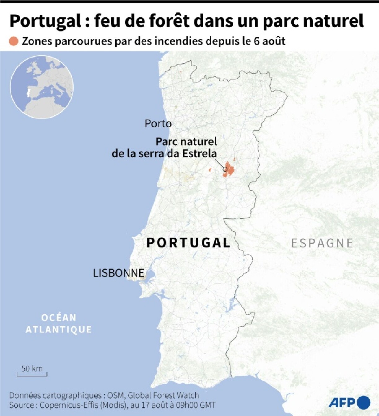 “Le feu est maîtrisé, mais il n’est pas éteint. Il y a tout un travail de consolidation qui va se poursuivre dans les prochains jours”, a déclaré mercredi soir à la radio TSF le commandant de la protection civile portugaise Miguel Oliveira.