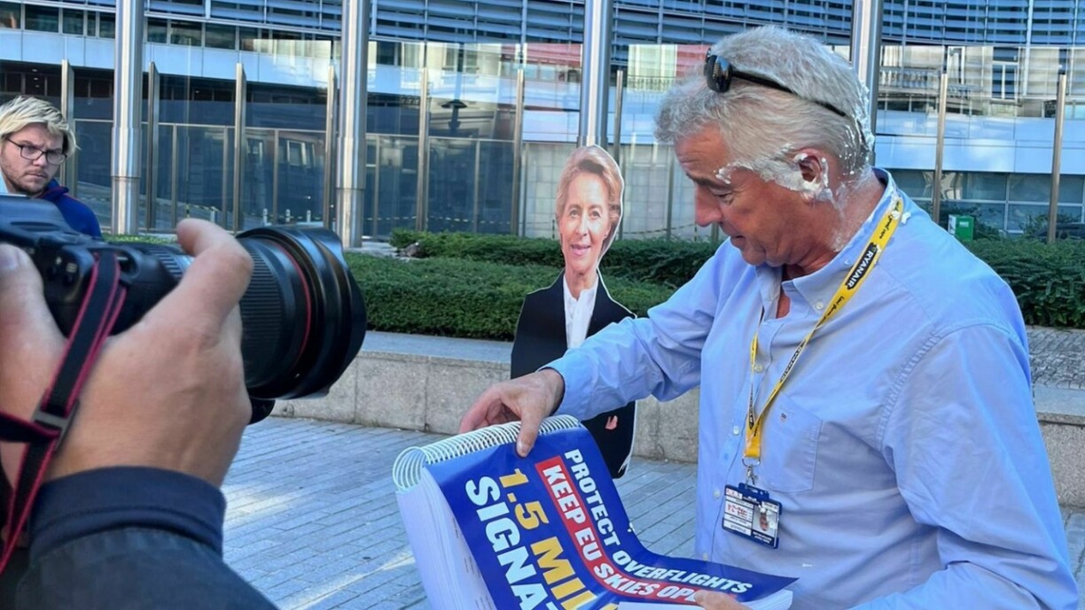 “Bienvenue en Belgique, arrêtez de polluer”, ont crié deux militantes en écrasant deux tartes à la crème sur son visage. La scène s’est produite en pleine rue, alors que le patron controversé de la compagnie irlandaise se préparait pour une conférence de presse au sujet des grèves qui affectent la compagnie en Belgique.