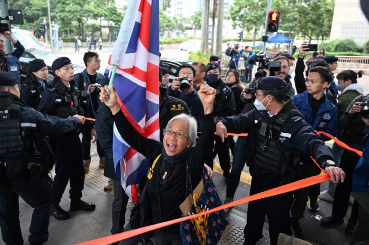 Parmi eux, Alexandra Wong, une militante mieux connue sous le nom de “Grandma Wong”, a crié “Soutenez Apple Daily, soutenez Jimmy Lai” en brandissant le drapeau britannique, avant d’être écartée par la police.