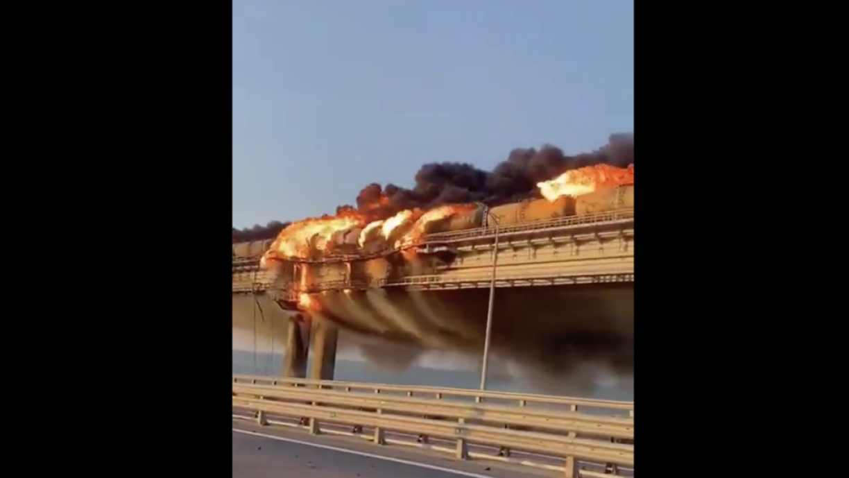 Ce pont, construit à grand frais sur ordre de Vladimir Poutine, sert notamment au transport d’équipements militaires russes pour l’armée russe combattant en Ukraine.