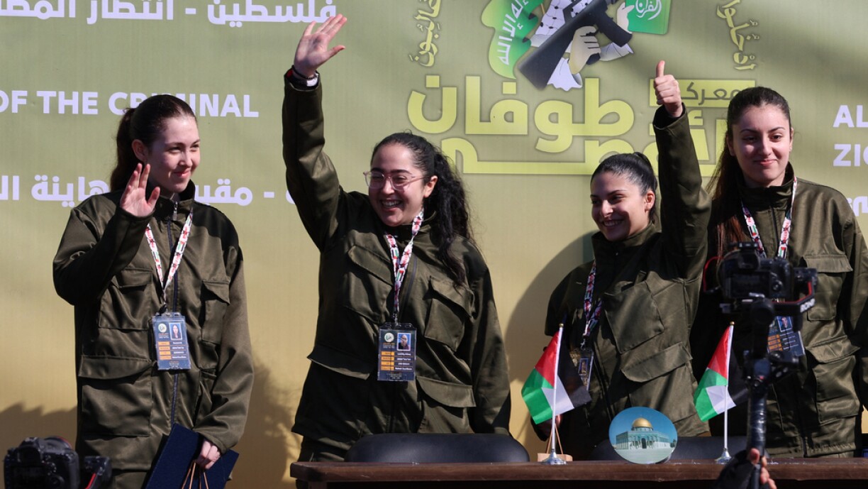 Avant de monter dans les véhicules de la Croix-Rouge, les quatre otages ont été présentées sur un podium installé sur une place dans la ville de Gaza, au milieu d’une foule compacte encadrée par des combattants en treillis et cagoulés des Brigades Ezzedine al-Qassam, branche militaire du Hamas, et des Brigades al-Qods, branche armée du Jihad islamique.