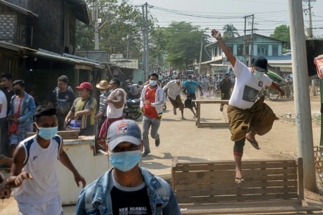 A Hlaing Tharyar, dans la banlieue de la capitale économique Rangoun, des policiers et des soldats ont affronté des manifestants armés de bâtons et de couteaux. Cachés derrière des barricades de fortune, ceux-ci ont fui après que les forces de sécurité ont ouvert le feu.