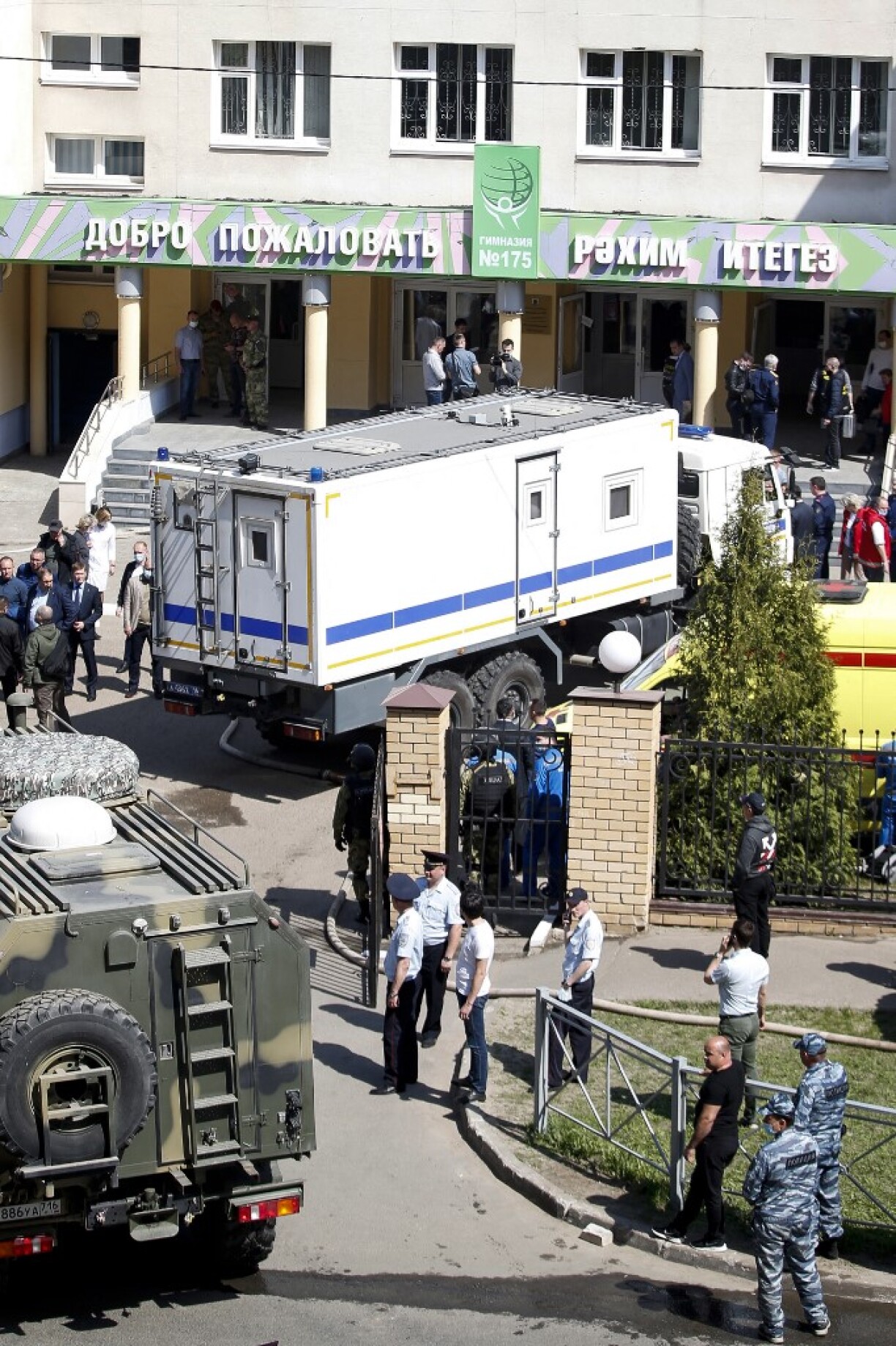Des images diffusées par des témoins sur les réseaux sociaux montrent des enfants ou des adolescents sautant des fenêtres du bâtiment de trois étages pour s’enfuir. Sur d’autres, on peut voir des personnes ensanglantées allongées sur l’herbe en train de recevoir de l’aide.