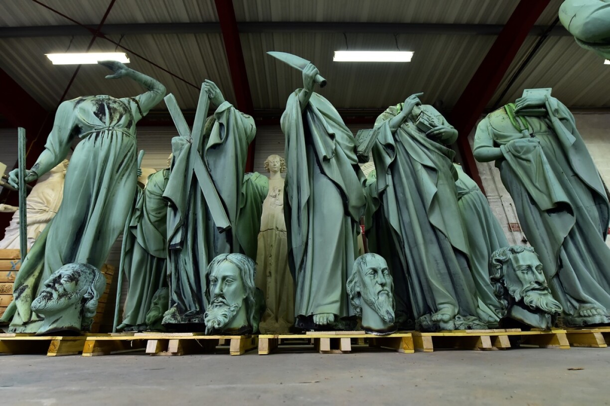 Elles l’ont échappé belle: les seize statues qui décoraient la flèche de la cathédrale ont toutes été retirées quatre jours avant l’incendie, afin d’être restaurées. Elles se trouvent dans le Périgord mais leur rénovation est “repoussée”, n’étant plus “la priorité” a confié Patrick Palem, responsable de la Socra, l’entreprise chargée de leur restauration. Ces statues en cuivre représentent les douze apôtres et quatre évangélistes.