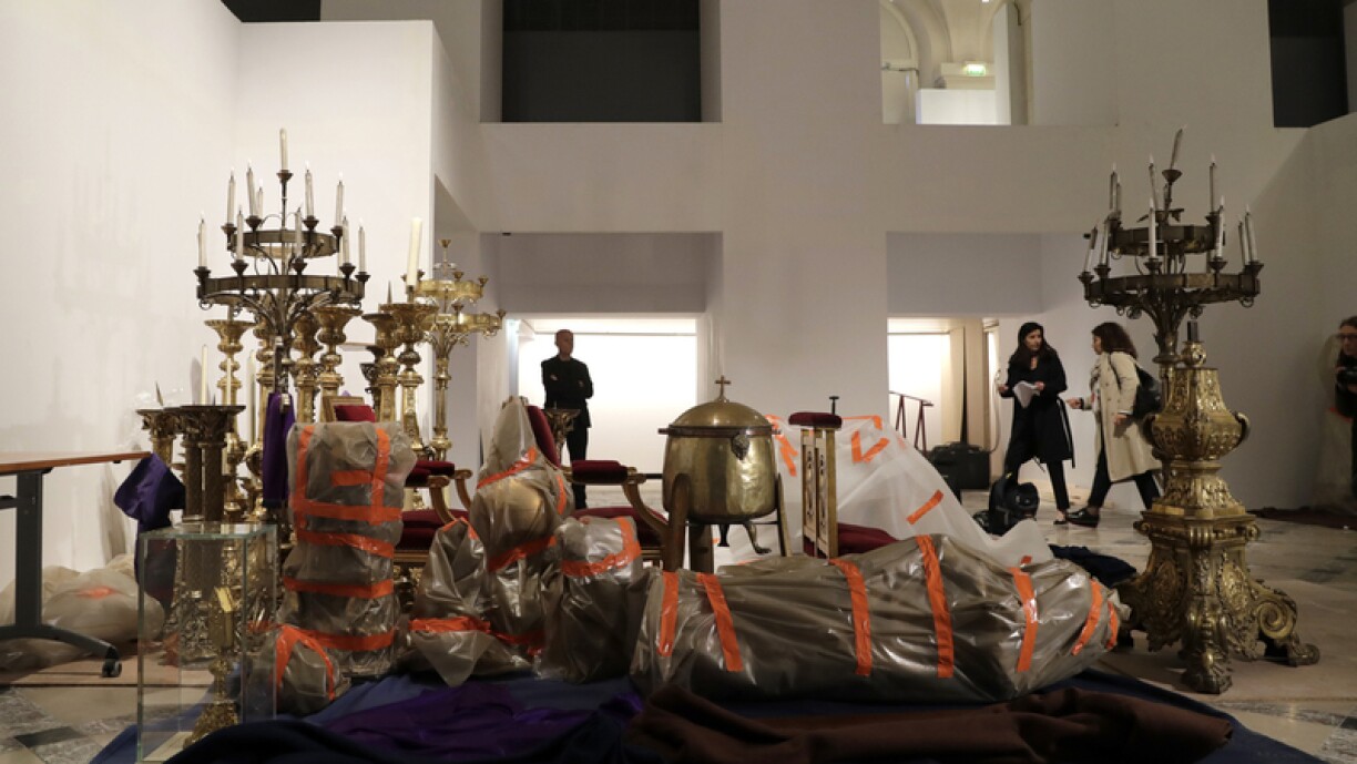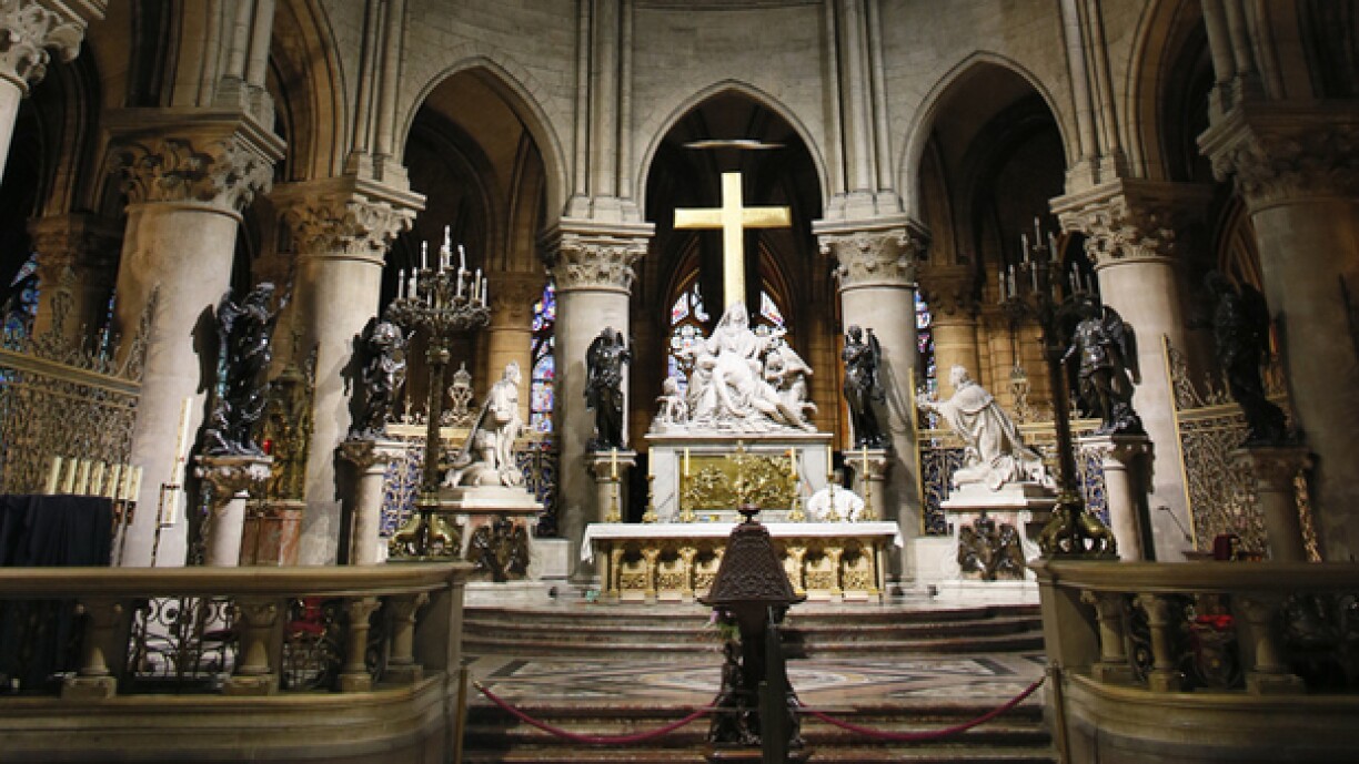 La croix et l’autel sont intactes, même s’ils ont été ensevelis sous les restes de la flèche, tombée dans la soirée de lundi.