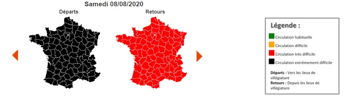 La journée de dimanche est ainsi classée verte au niveau national dans le sens des retours mais orange en région Auvergne-Rhône-Alpes et sur le pourtour méditerranéen.