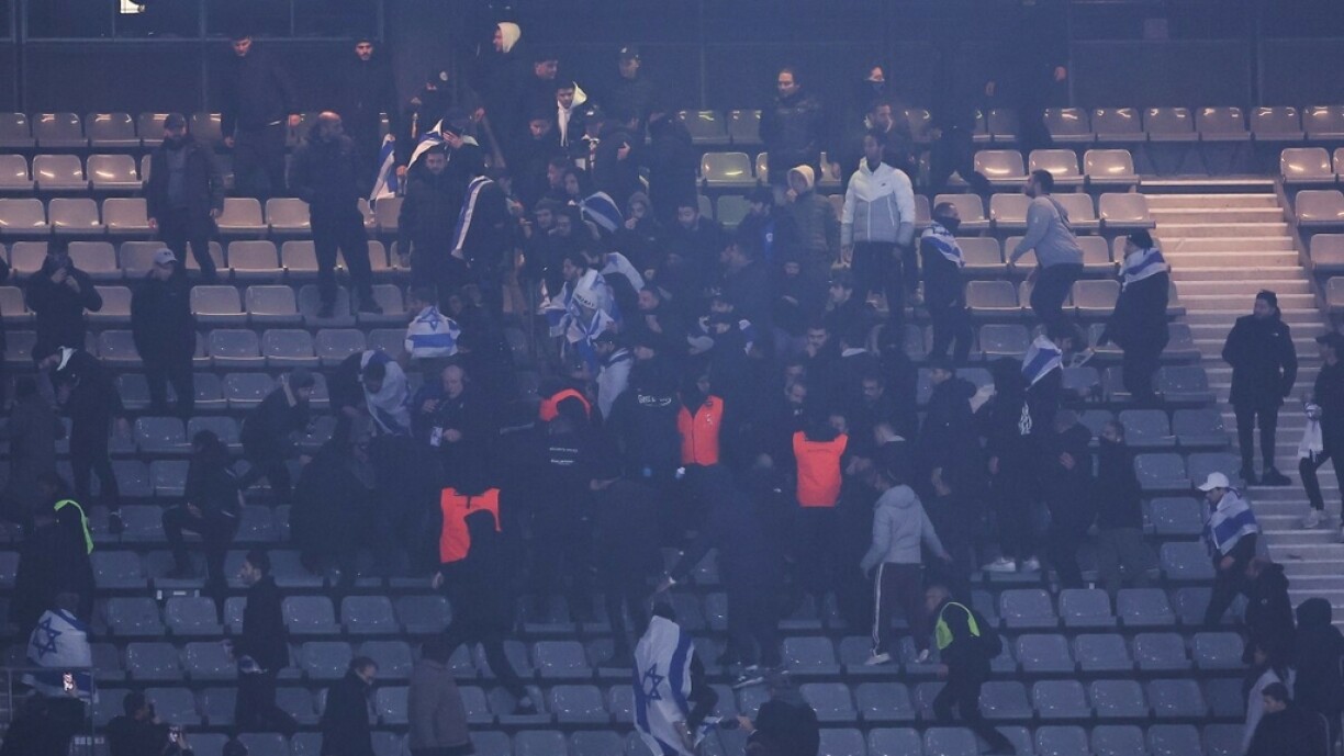 Des vidéos prises par des spectateurs et postées sur le réseau social X montrent des supporters, certains avec des drapeaux israéliens, courant le long des rangées de sièges du Stade de France tandis que d’autres supporters sifflent et huent.