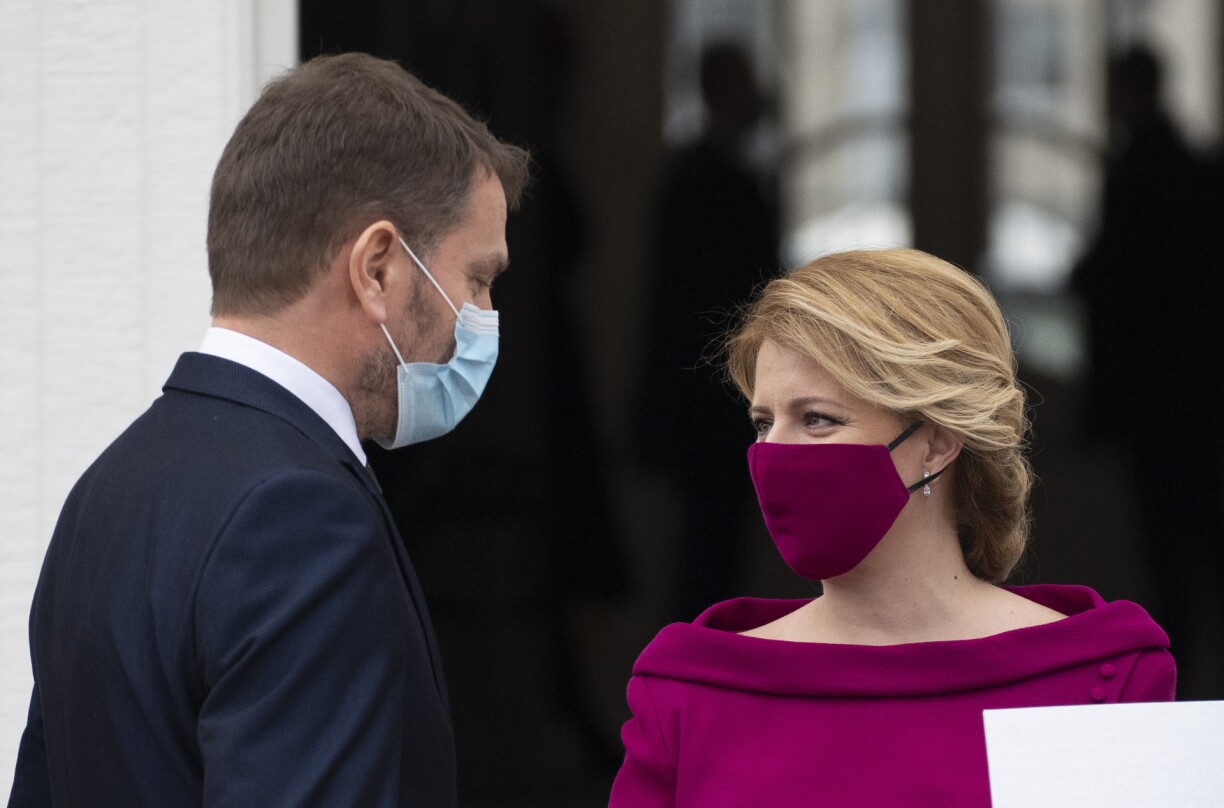 La présidente slovaque Zuzana Caputova a pour sa part montré son sens des détails en portant, lors d’une photo officielle de son nouveau gouvernement en mars, un masque fuchsia, parfaitement assorti à sa robe.