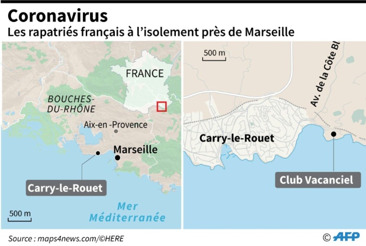 Après leur atterrissage vendredi midi sur la base militaire d’Istres (Bouches-du-Rhône), les rapatriés qui ont fui Wuhan, épicentre de l’épidémie de nouveau coronavirus, ont regagné par cars la petite ville de Carry-le-Rouet.