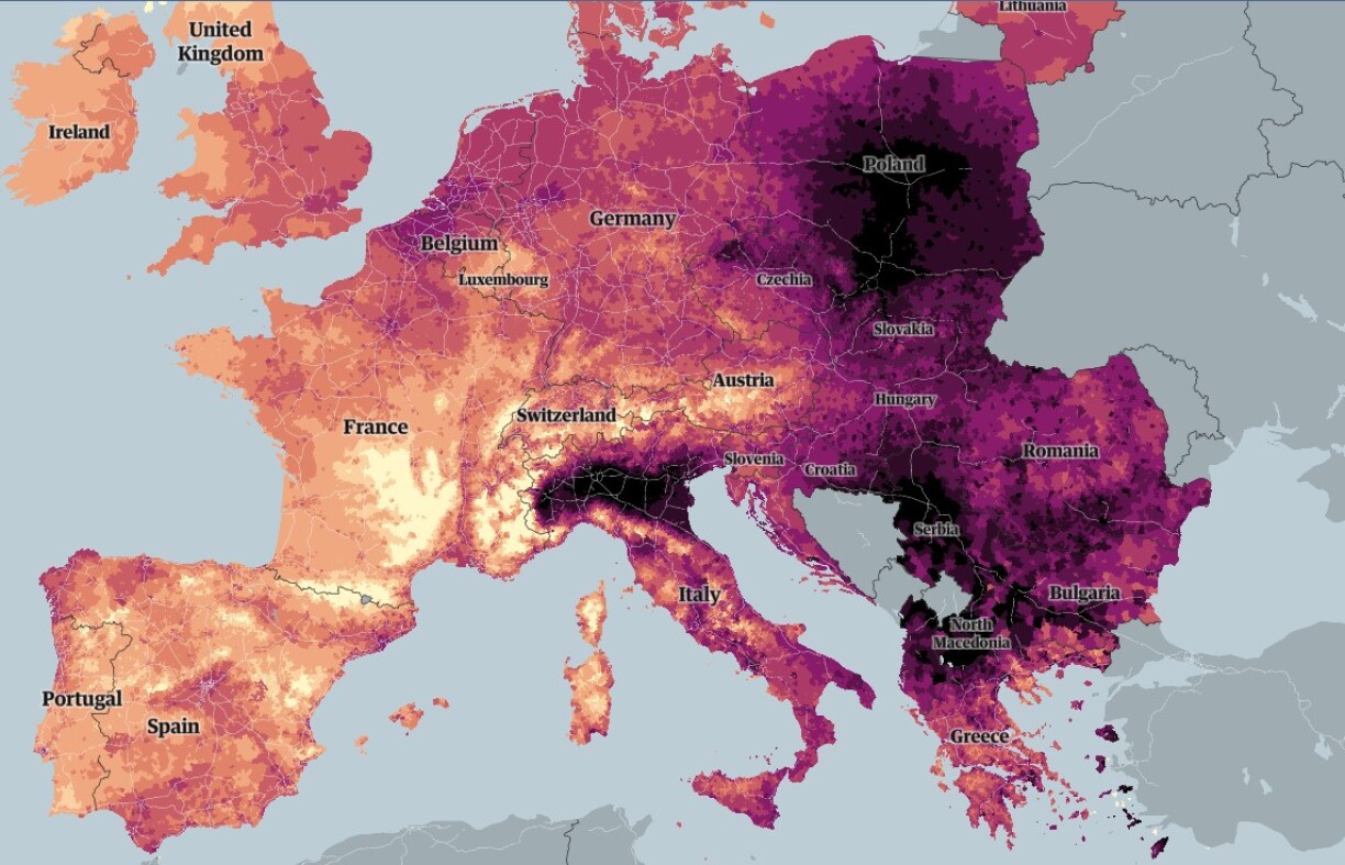 La plupart des villes européennes présentent des taux de pollution aux particules fines supérieurs aux lignes directrices de l’Organisation mondiale de la Santé. Le pays le plus touché en Europe serait la Macédoine du Nord, où deux tiers des habitants de ce pays vivent dans des zones où la concentration en PM2,5 est plus de quatre fois supérieure aux lignes directrices de l’OMS. Dans sa capitale Skopje, ce niveau de pollution serait près de six fois supérieur à ces valeurs.