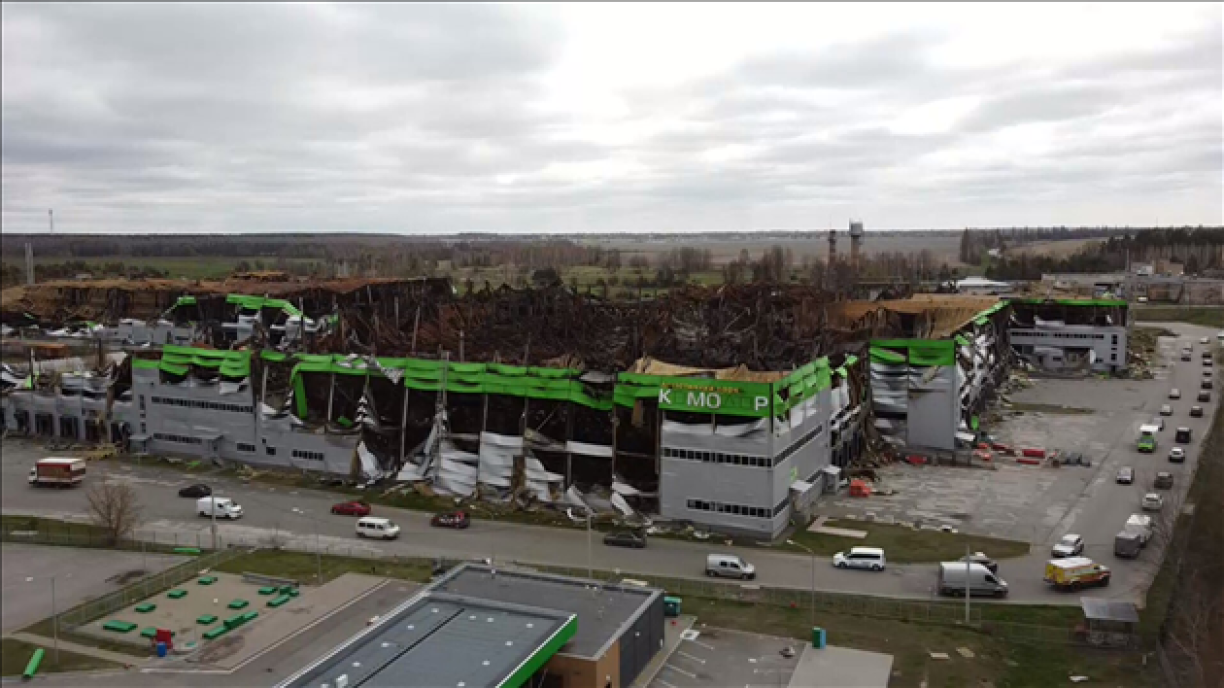 “A 60 kilomètres de Kiev, on découvre les premières traces visibles des combats”, observe notre reporter Loïc Parmentier devant un entrepôt éventré dans la ville de Kalynivka.