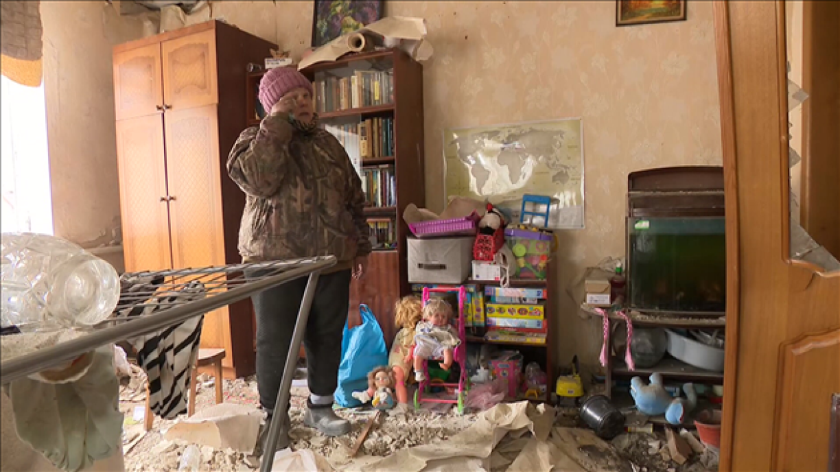 Nous rencontrons Valentina et son mari. Elle nous invite à voir les dégâts dans son foyer. C’est le début de la visite d’une maison victime de bombardements… ou plutôt ce qu’il en reste.