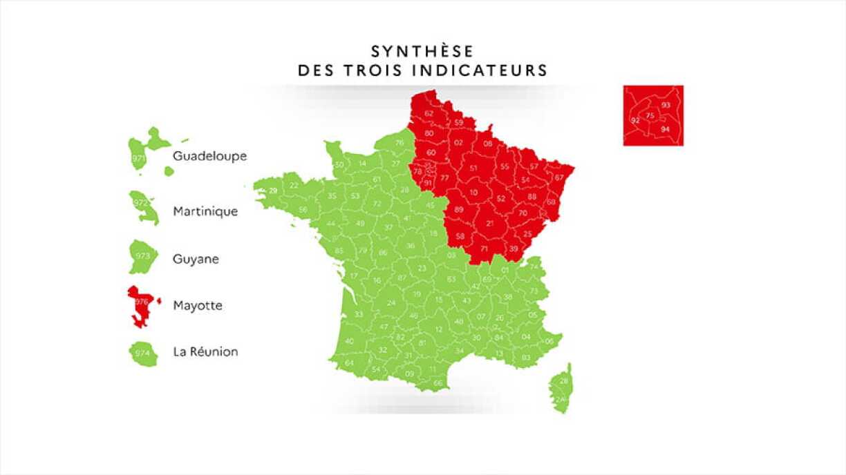 Pour l’heure, quatre régions (Ile-de-France, Hauts-de-France, Grand Est et Bourgogne-Franche-Comté) ainsi que Mayotte sont colorées en rouge. Trois critères président à ce classement qui impose des restrictions: la circulation du virus, mesurée par les cas de coronavirus dans les services d’urgence; la disponibilité des lits en réanimation; et la capacité à tester. Alors que deux semaines et demie après le début du déconfinement, les indicateurs sont plutôt satisfaisants, ces territoires pourraient-ils passer au vert